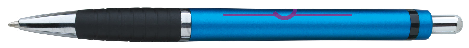 A pointed chrome band set against the sleek metallic barrel of this plunger-action pen gives it a polished look. Its textured rubber grip makes for a comfortable fit in your hand.