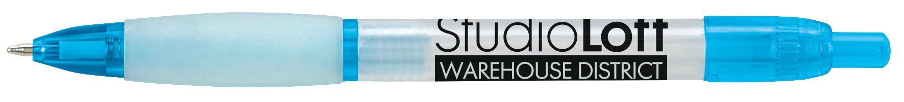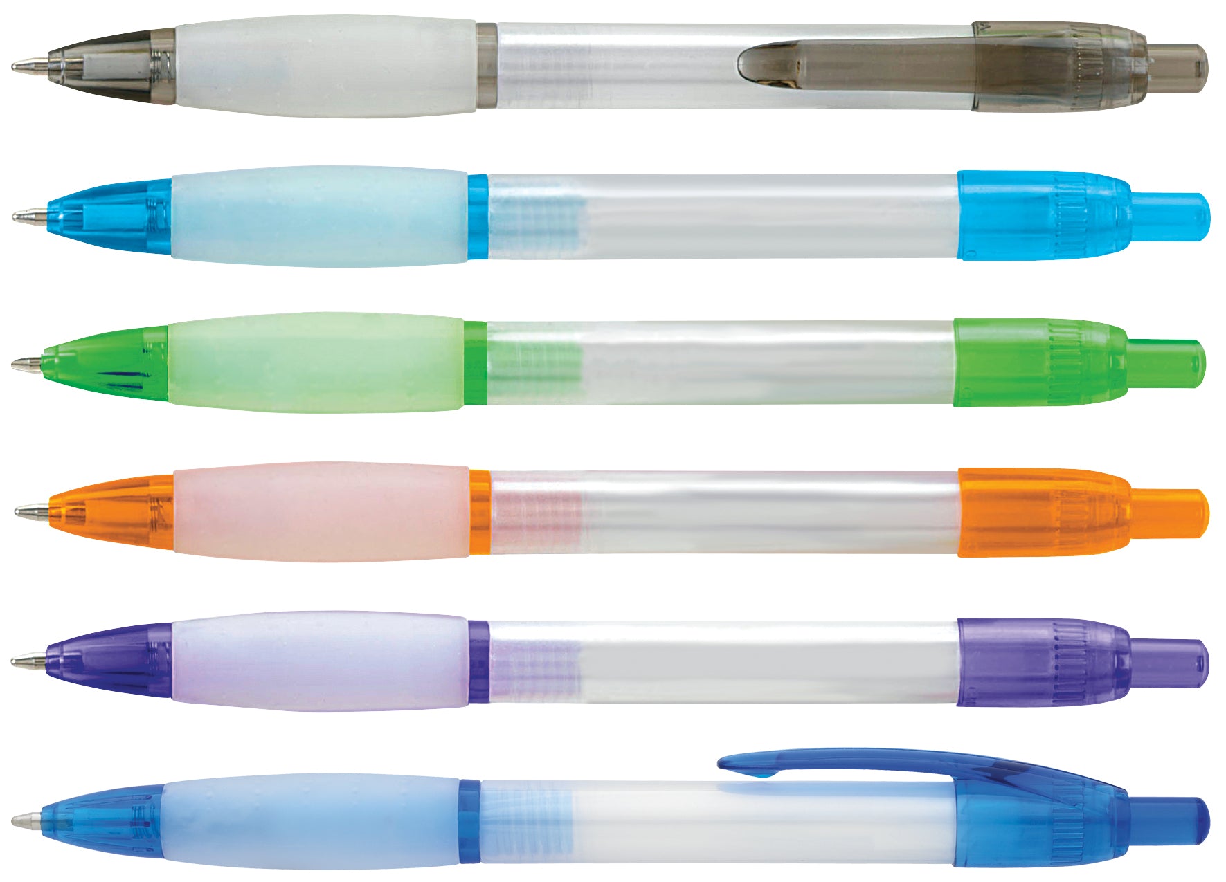 A frosty barrel and translucent trim give this pen a laidback feel. Its rubber grip is ready to get you through an afternoon of note-taking or a long board meeting.