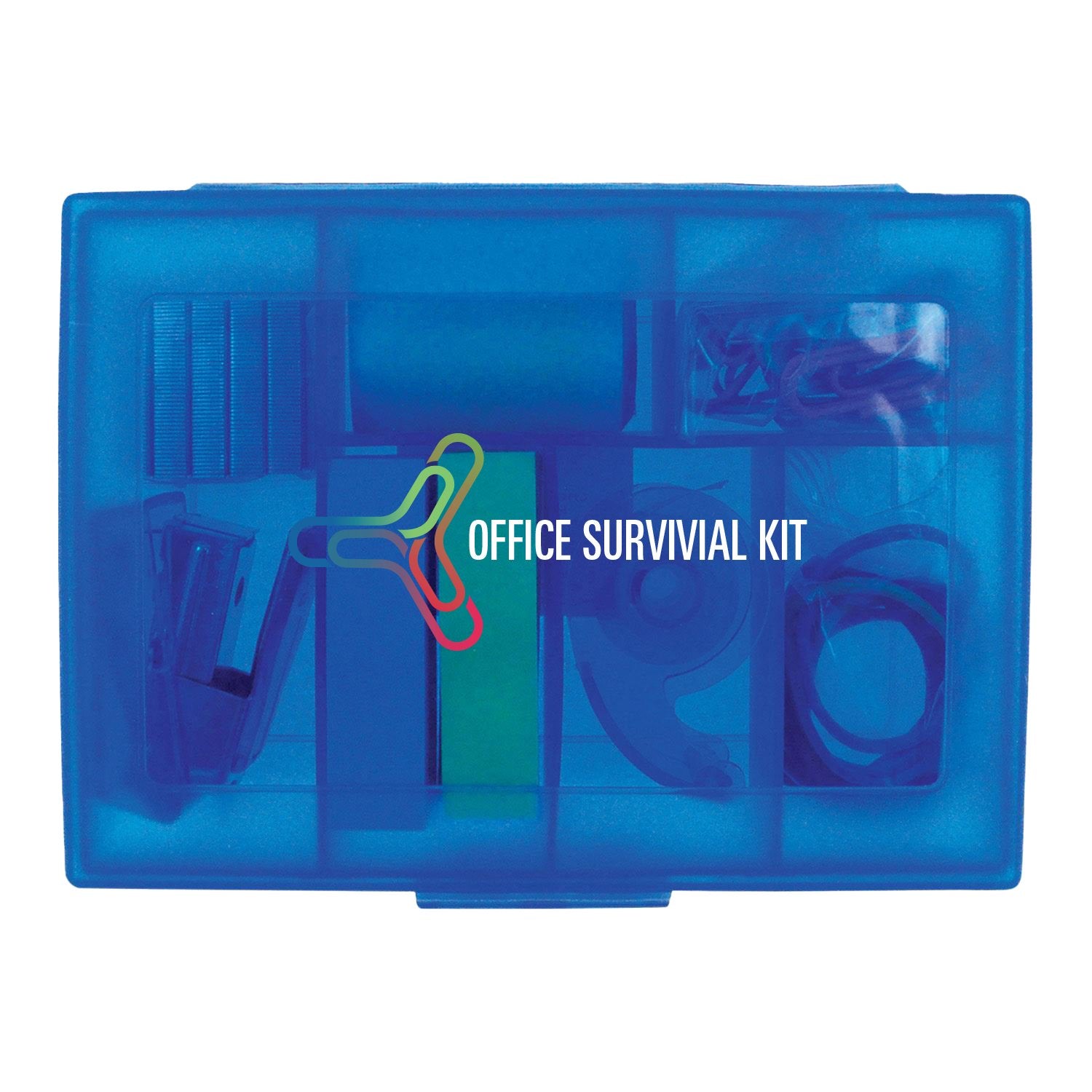 Use this divided translucent box with lid to keep your desk neat and tidy. It includes everything you need for your workspace, including a stapler, staples, paper clips, rubber bands, transparent tape, adhesive notes, and flags. Whether working from home or the office, you’ll want this small office supply kit nearby.