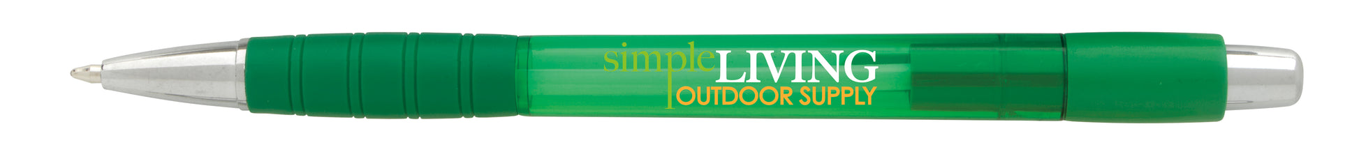 Translucent corporate colors with a grip make this a great pen for your next promotion!