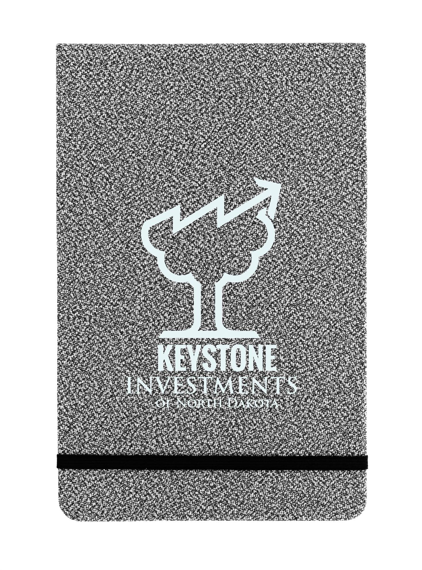 Elevate your note-taking experience with this versatile journal featuring a textured cover made from 100% recycled polyester. Its 80 sheets of white, dotted, FSC®-certified paper provide the perfect canvas for organized layouts, sketches, and creative ideas, allowing you to switch between vertical and horizontal use effortlessly. Plus, the convenient black elastic band keeps your journal securely closed when you’re on the go. 36% of overall product is made of post-consumer recycled polyester. The FSC® label means that the materials used for this product come from well-managed FSC®-certified forests and other controlled sources.