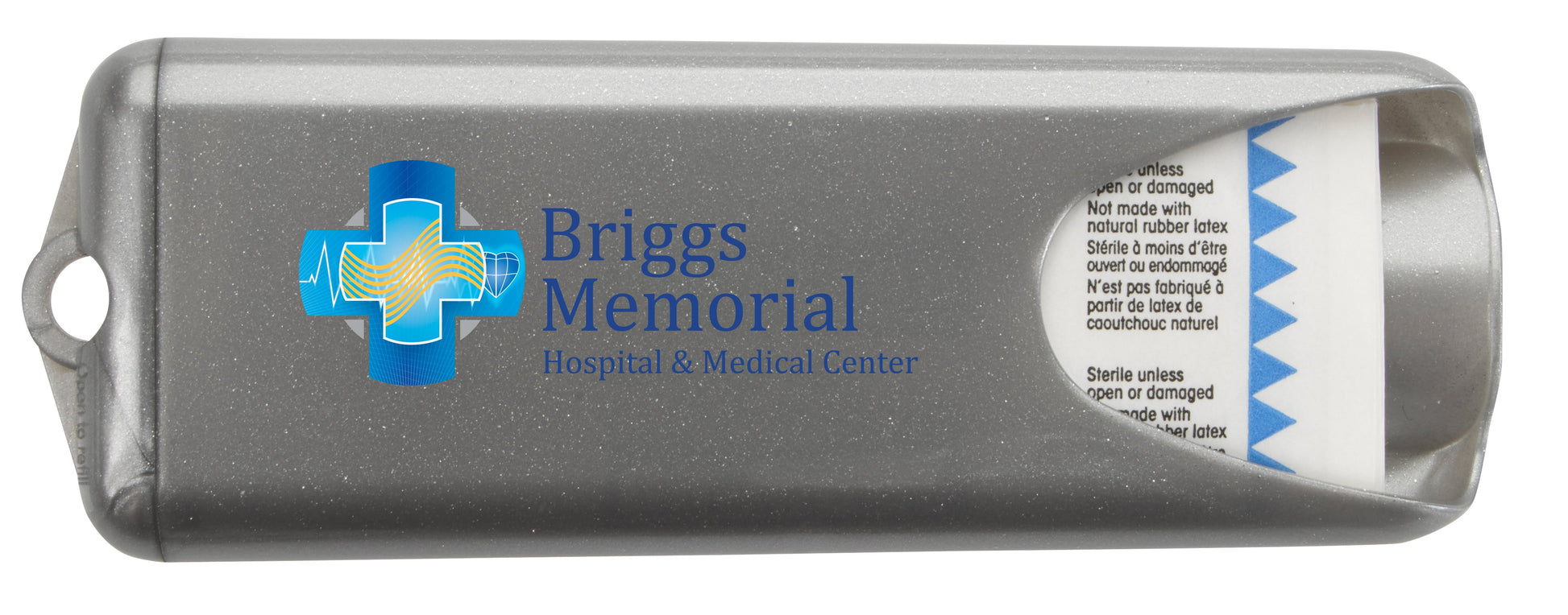 The Nuvo Bandage Dispenser comes in trendy metallic or translucent colors and conveniently holds five clear bandages. It's great to have on hand for when those unexpected boo-boos strike.