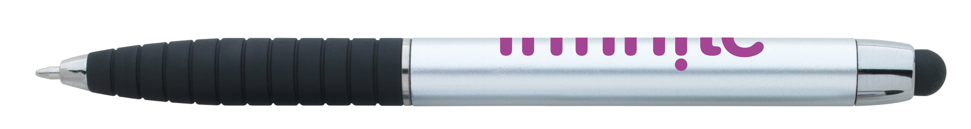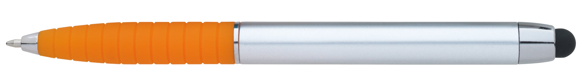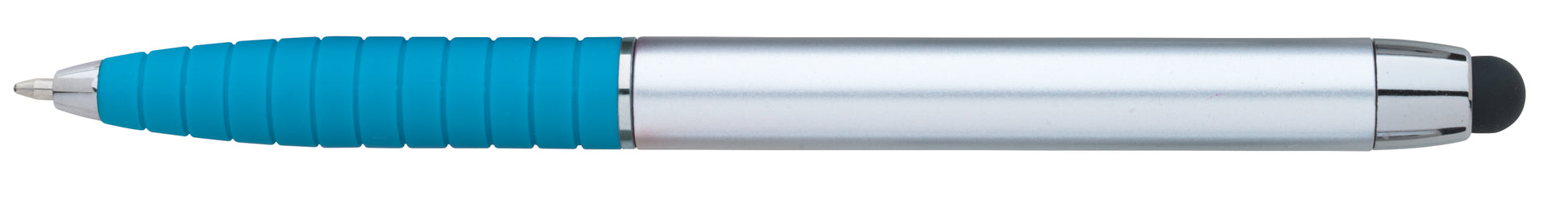 This silver twist-action pen is designed with a colorful grip for added comfort in your hand. Flip it around, and the stylus does double duty on any touchscreen.