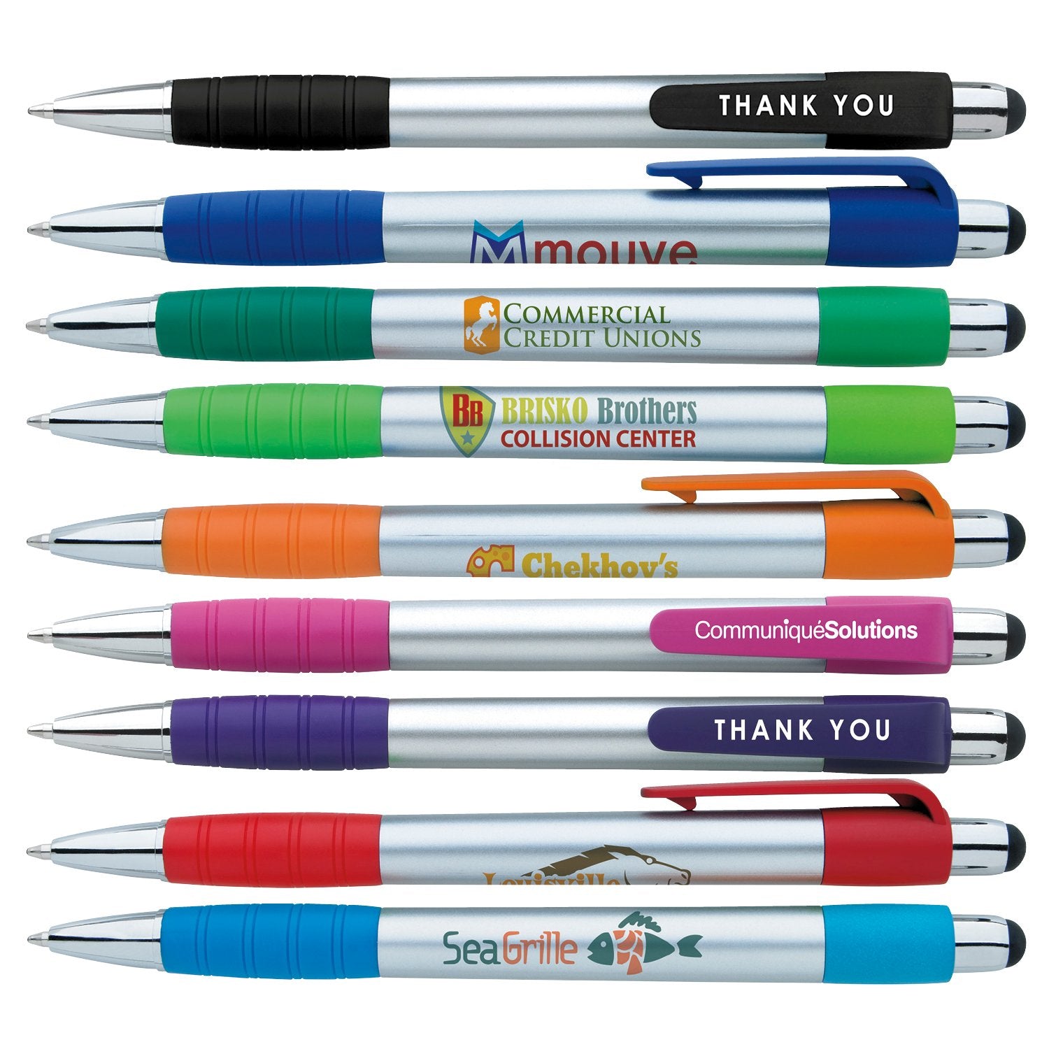 This plunger-action pen, with a functional grip and built-in soft-touch stylus, is a tried-and-true winner. Its silver barrel and vibrant trim colors make it fun to use.