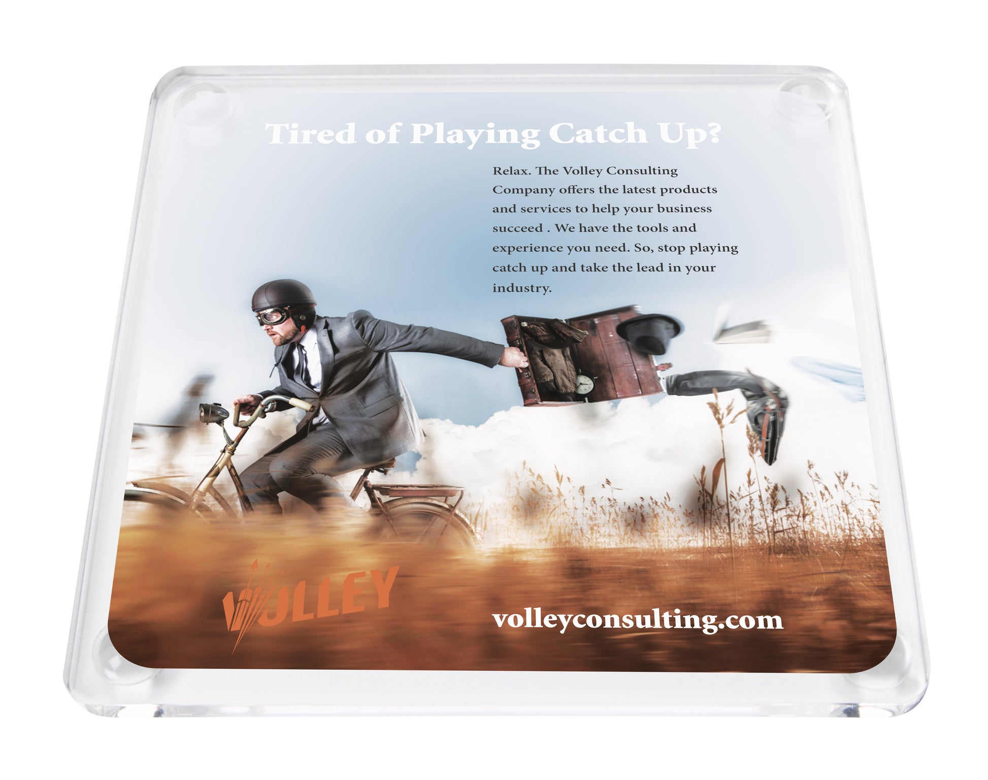 This colorful acrylic coaster looks like glass. It comes with adhesive silicone feet to prevent it from scratching up your furniture.