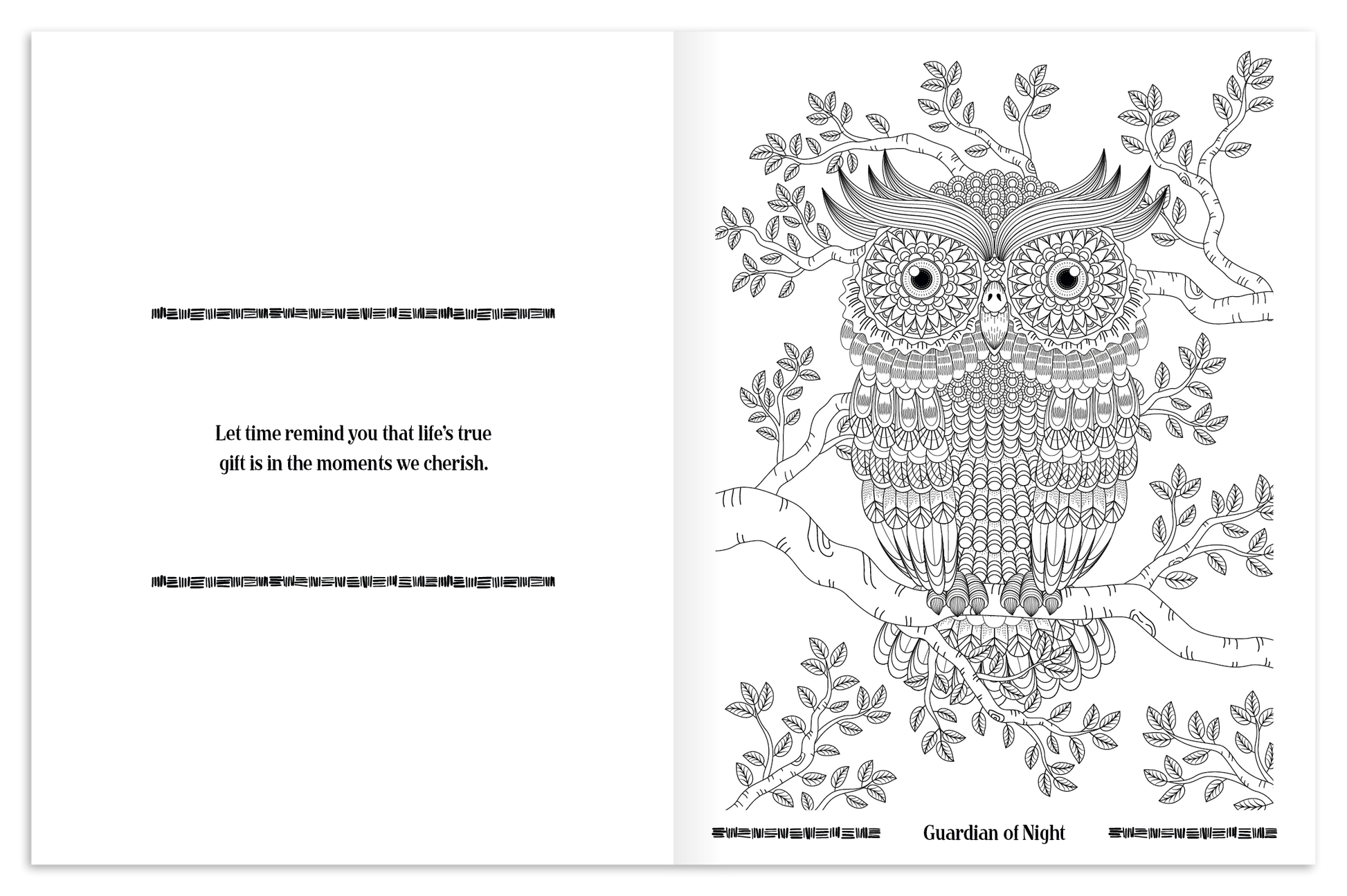 This adult coloring book features 13 beautiful images of animals accompanied by inspirational messages. The FSC® label means that the materials used for this product come from well-managed FSC®-certified forests and other controlled sources.