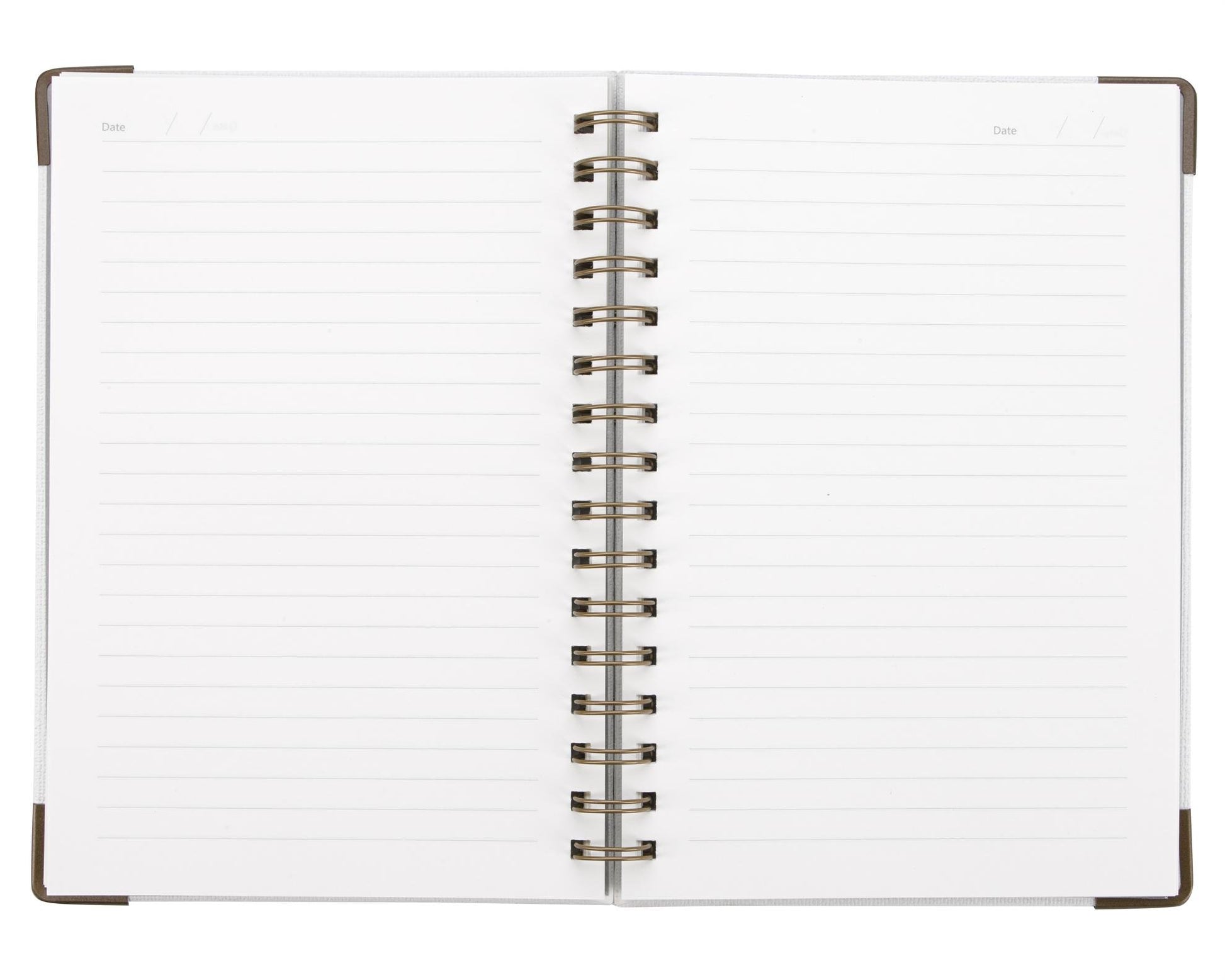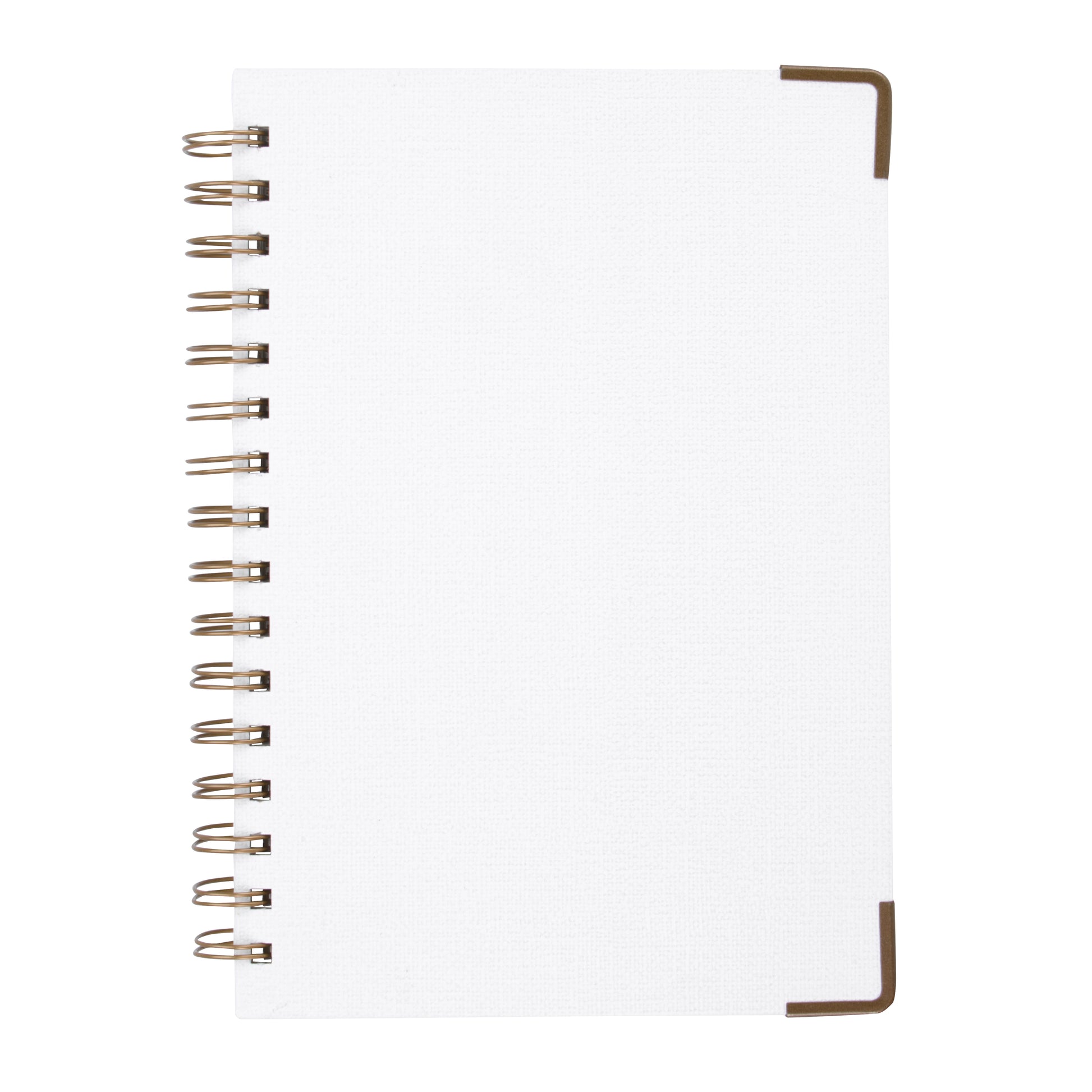 The Woven Paper Hardback With Metal Accents Notebook includes lined and dated pages, with a textured hardcover featuring metal accents.