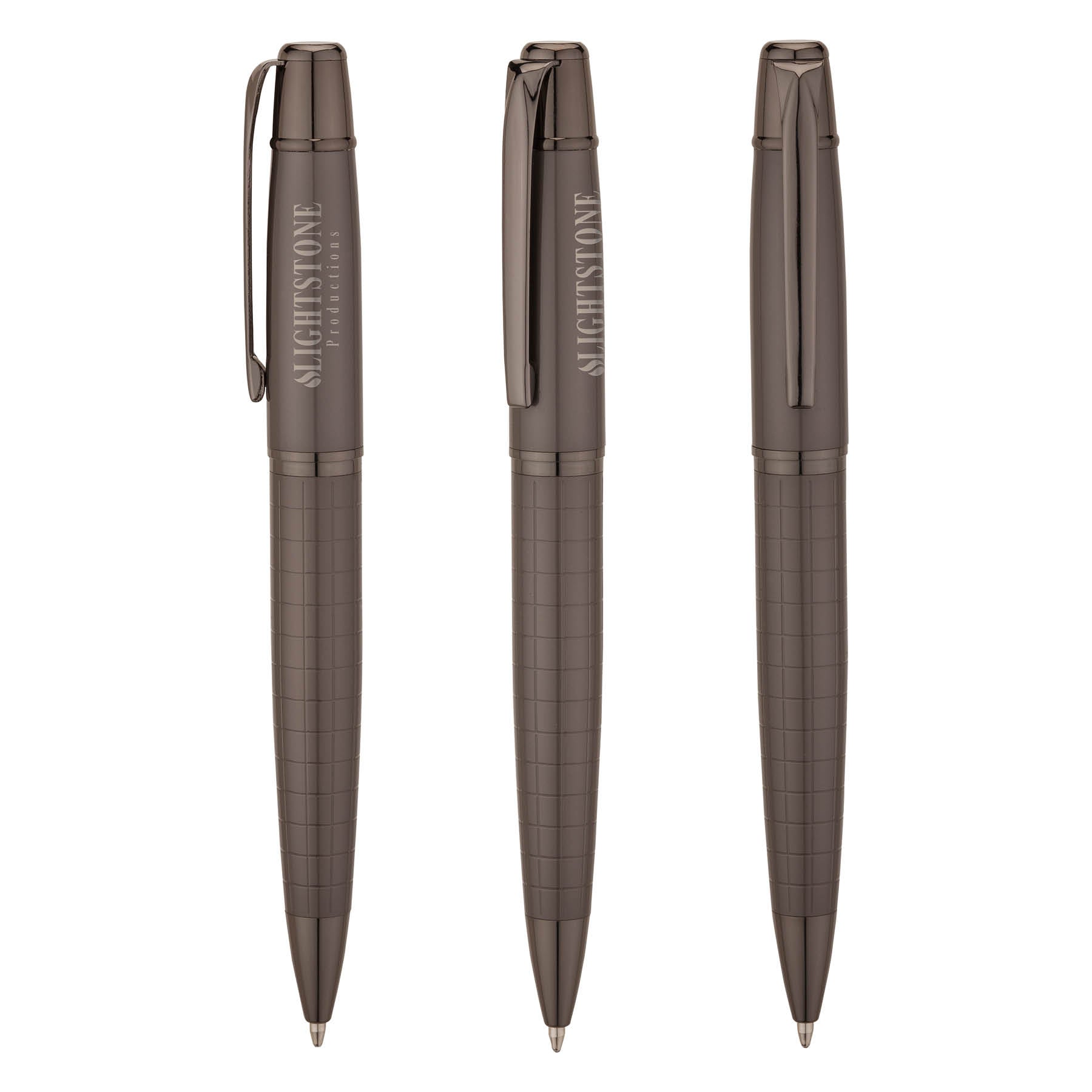 The Granite brass ballpoint pen has an even-balanced construction to give its twist-action design a weighty feel in hand when you have important papers to sign. The satin gunmetal finish, shiny gunmetal trims, etched barrel, and black ink give this pen a sense of gravitas.