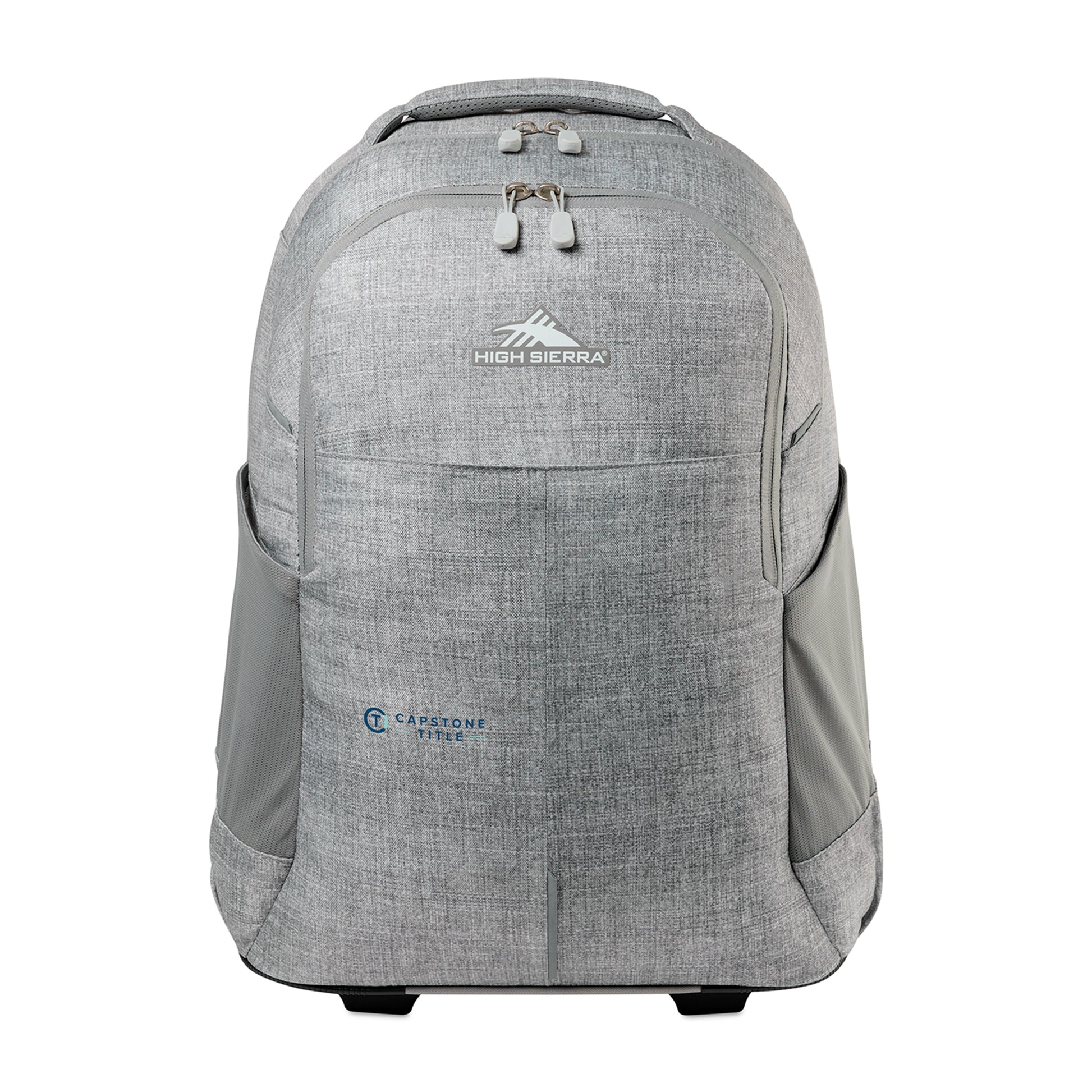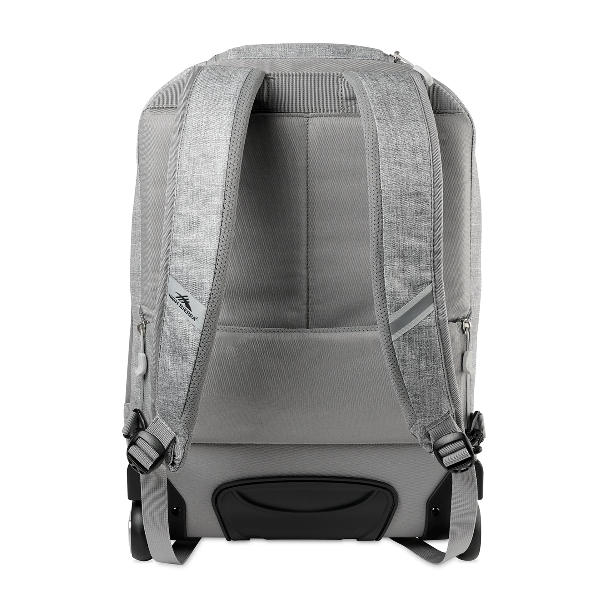 The High Sierra® Powerglide Pro Wheeled Backpack is built for heavy loads and smooth travel. Featuring corner-mounted wheels, a telescoping handle, and tuck-away straps, it easily converts from backpack to wheeled bag. With a 17" laptop sleeve, multiple compartments, and dual bottle pockets, it’s the ultimate travel companion.