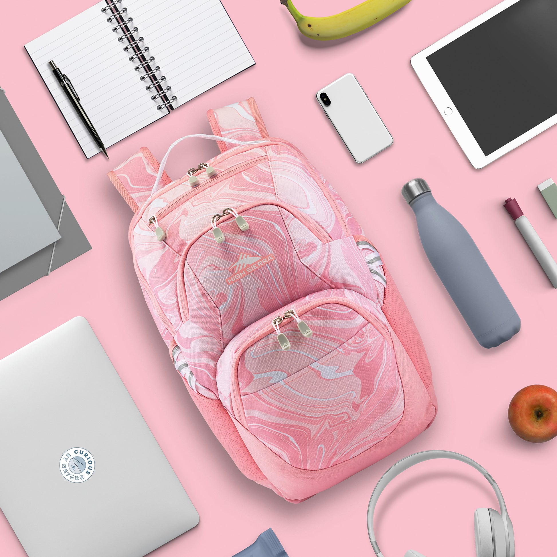 The High Sierra® Swoop SG Laptop Backpack keeps everything in its place with cascading external pockets, a padded laptop sleeve (fits 17"), and tablet sleeve (fits 11"). With bottom-drop Laptop Hammock™ protection, dual water bottle pockets, and fleece-lined storage, it’s designed for comfort and organization.