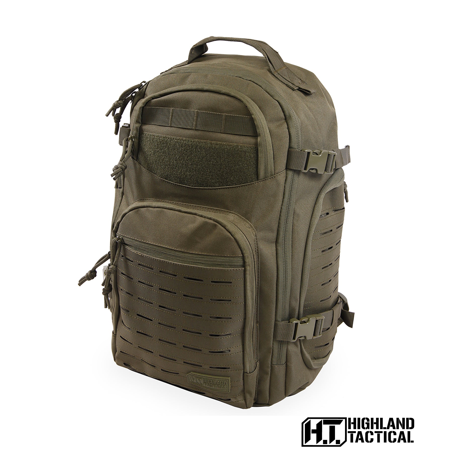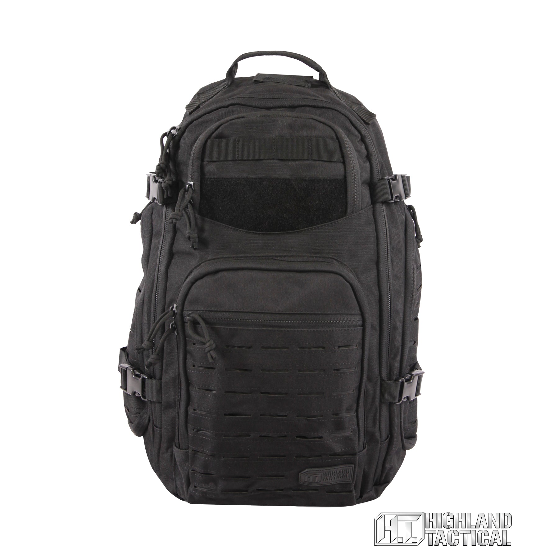 The Roger Tactical Backpack is the first line of defense for all things tactical. This rugged backpack from Highland Tactical® is constructed of heavy-weight durable polyester and equipped with a spacious main compartment with laptop pocket and 6 zippered pockets to ensure protective gear storage. The laser cut MOLLE webbing reduces weight while providing loops to customize as needed and the hook & loop patch adds more customization opportunity. Take advantage of the 4 compression straps and side zippered pockets large enough for most 24oz / 700 ml bottles, that allow you to secure gear and carry additional items. The padded backpack straps and sternum straps give you the extra support you need for the long haul. The Roger also makes for a great go-bag so anyone can be ready in an emergency.