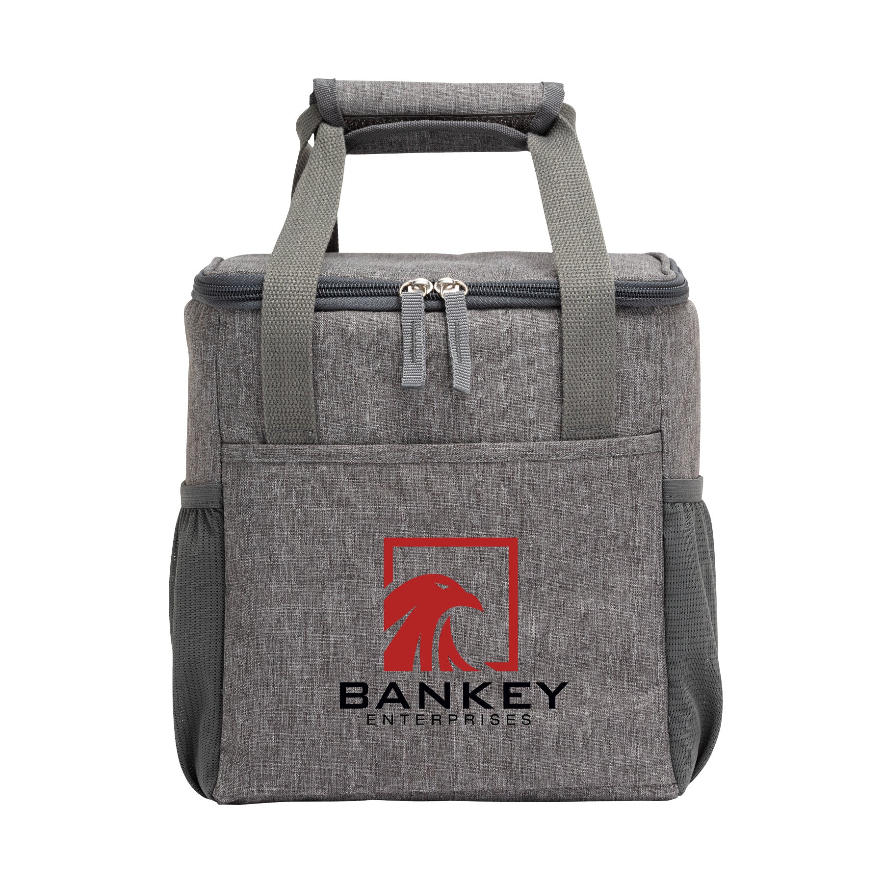 With plenty of pockets and compartments, the Horizon Lunch Cooler is a convenient and fashionable way to carry lunch or snacks to the office, on a picnic, or on a road trip. The heat-sealed PEVA lining with extra padding helps keep the contents cold or warm for longer and is sized to easily accommodate nine cans. It has a front pocket, 2 side mesh pockets, a zippered main compartment and a zippered mesh pocket on the interior of the lid. The Horizon is a great welcome gift to your new employees.