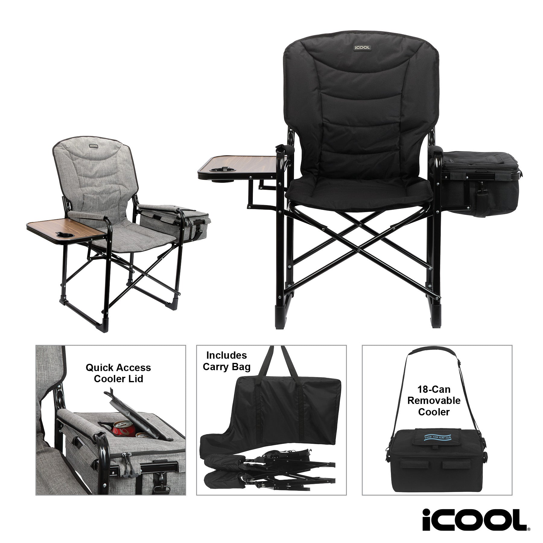 With a side table for your snacks and a removable cooler with PEVA lining to keep your drinks cold, the iCOOL Twin Peaks Deluxe Camping Chair with 18-Can Cooler is perfect for any outdoor adventure. Made of durable 600D Polyester, this portable camping chair is versatile, practical, and functional. Once folded, use the included carry bag that can be slung over your shoulder to make packing and carrying a breeze. The padded back, seat and arm rests provide comfort and the quick-access cooler lid makes grabbing that next refreshment easy. Its reinforced steel frame is well constructed and tested to hold up to 450 lbs. A portion of all proceeds is donated to Shelter to Soldier™, a non-profit organization that rescues dogs to train as service animals for veterans in need.
