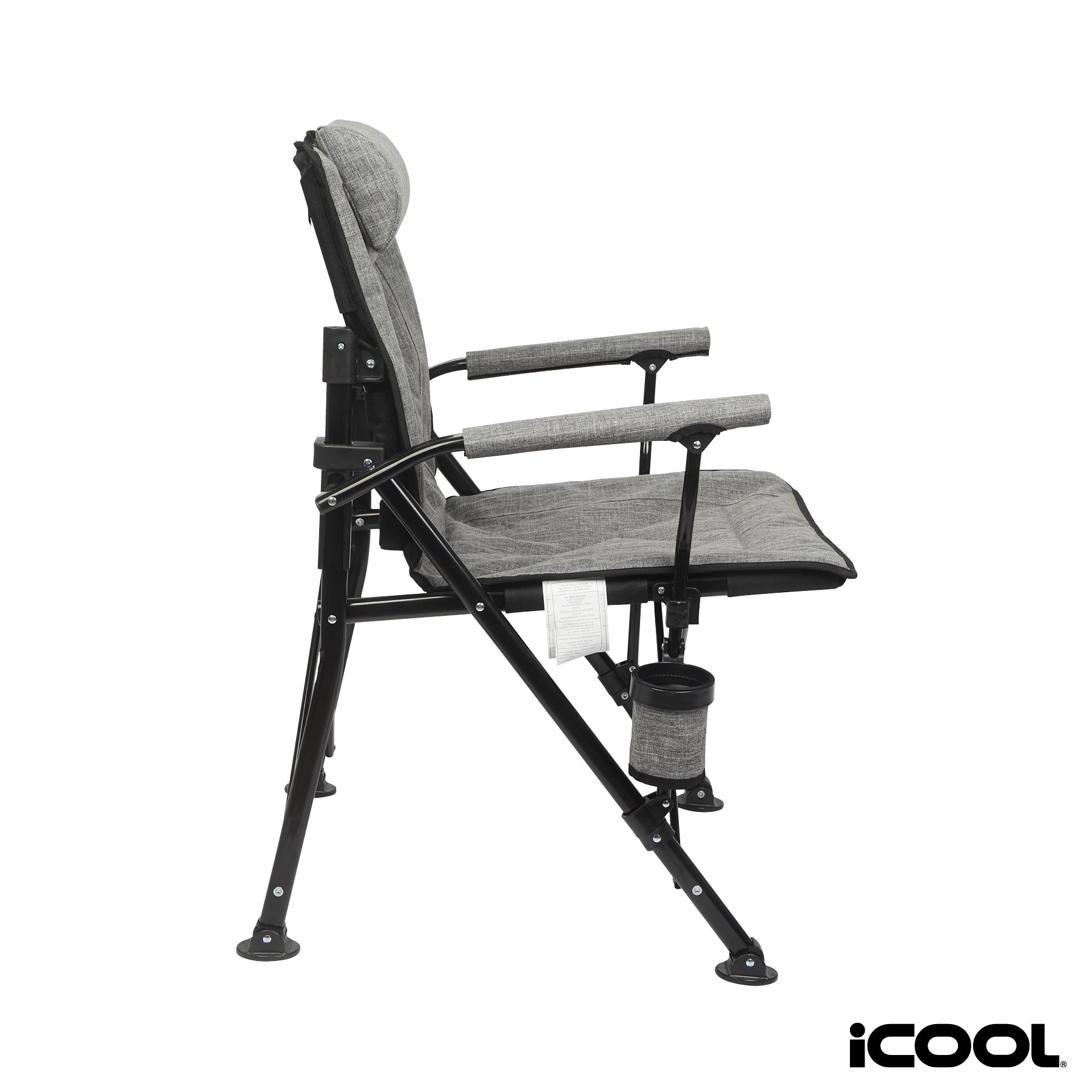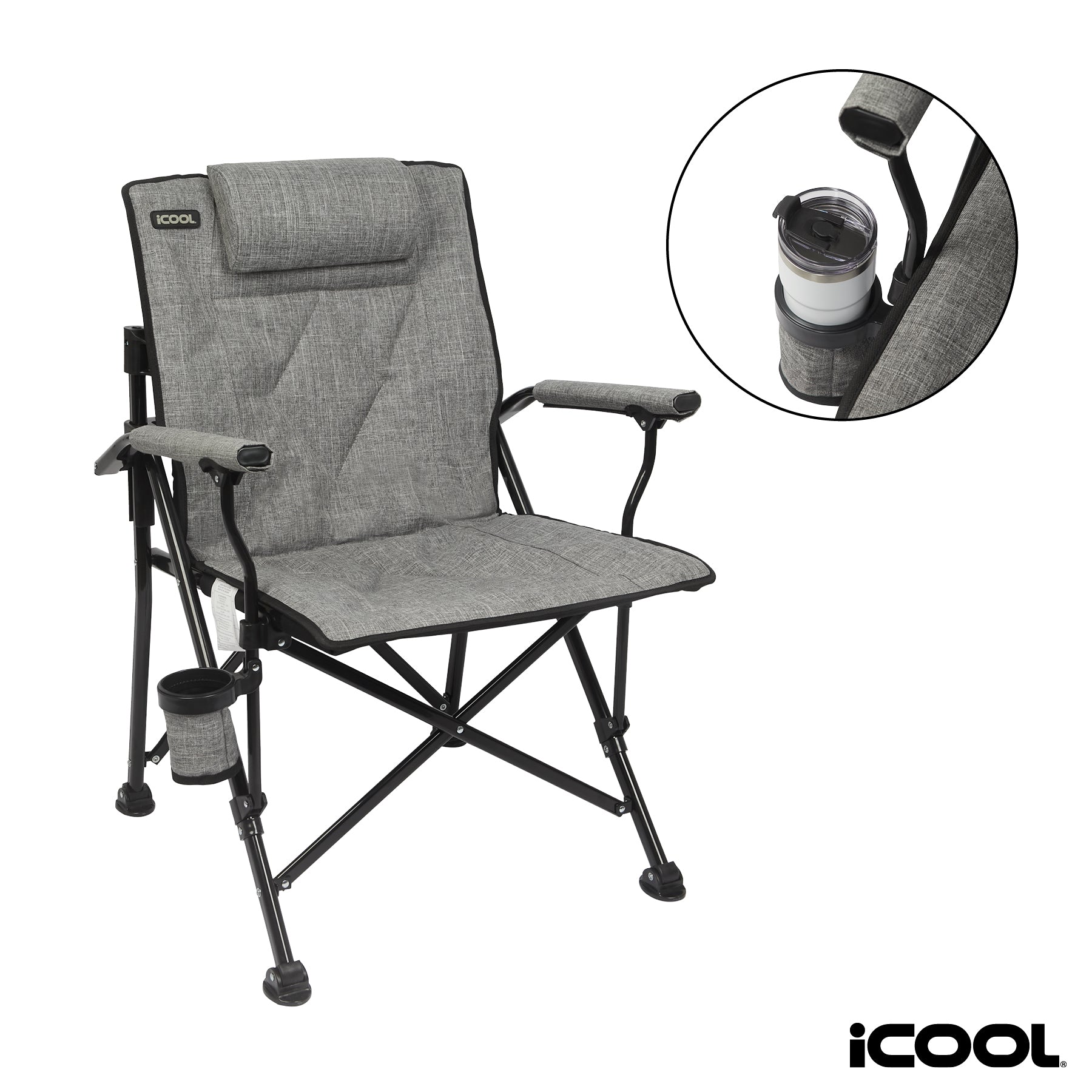 The iCOOL Twin Peaks Portable Camping Chair provides reliable and comfortable seating wherever your adventures take you. Made of durable 600D Polyester, this portable chair features a foldable cup holder and an included carrying bag for easy transportation and storage. Its padded back, seat and arms and detachable pillow provide comfort and support for a relaxing rest at the beach, the trail, or really anywhere you'd like to stop and enjoy the view. Its reinforced steel frame is well constructed and tested to hold up to 450 lbs. A portion of all proceeds is donated to Shelter to Soldier™, a non-profit organization that rescues dogs to train as service animals for veterans in need.