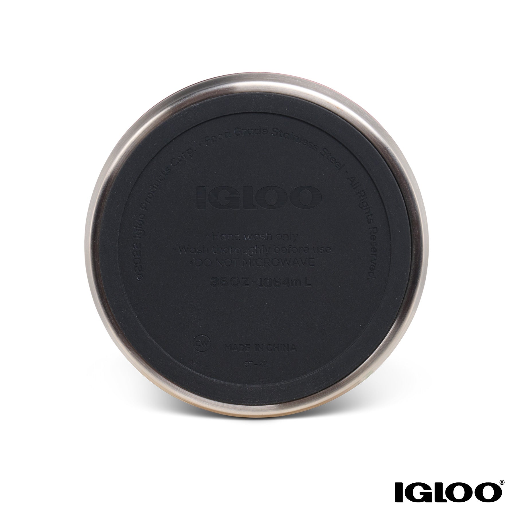 The large capacity of the Igloo® 36 oz. Water Bottle is fully vacuum insulated and keeps drinks hot for 18 hours and cold for 36 hours. The dual opening lid is functionally designed and features a twist n’ chug spout for drinking and a wide opening that allows for easy cleaning and adding ice. The swing up, tuck tight handle sits flush against its body when not in use, and its double injection grip makes it comfortable to carry around. This bottle is made with 18/8 food-grade stainless steel and copper lining to ensure optimum temperature control and its thumb grip indent make it easy to hold while drinking. The built-in silicone coaster adds a layer of protection for your tumbler and tabletop surfaces and it's FDA Compliant and BPA Free. Gift the Igloo® 36 oz. Vacuum Insulated Water Bottle to your outdoor-loving coworker or employee.