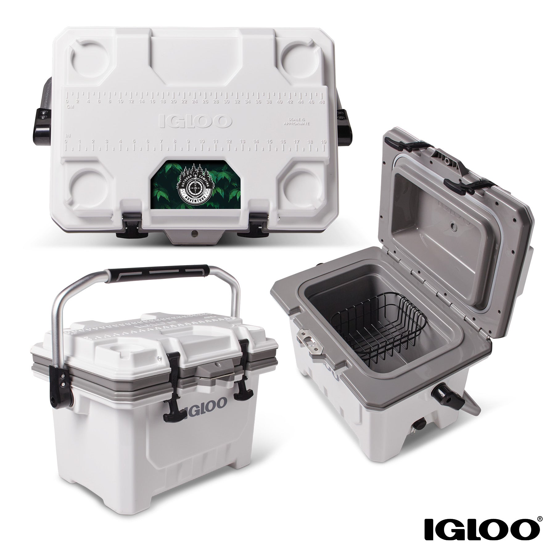 The IMX24 QT Cooler by Igloo® is lightweight yet provides heavy-duty performance! Its Ultratherm® foam-insulated walls and lid provide superior, extended cold retention performance that keeps ice up to 4 days, the Cool Riser Technology® improves cooling performance by elevating the cooler body away from hot surfaces, and the UV inhibitors help protect the cooler from sun damage. The solid injection-molded construction provides advanced durability, and marine-grade, rubberized T-latches provide a secure lid closure. The 35-can capacity IMX24 also features a suspended, removable interior wire food basket to help keep smaller items dry, a sturdy swing handle with grip, threaded drain plug with tethered cap, and an integrated lock-ready metal plate provides an extra security option. The lid has four self-draining cup holders, a built-in stainless steel bottle opener, self-stopping hinge to hold the lid open and a molded-in fish ruler. This Igloo product includes a limited 5 year warranty.