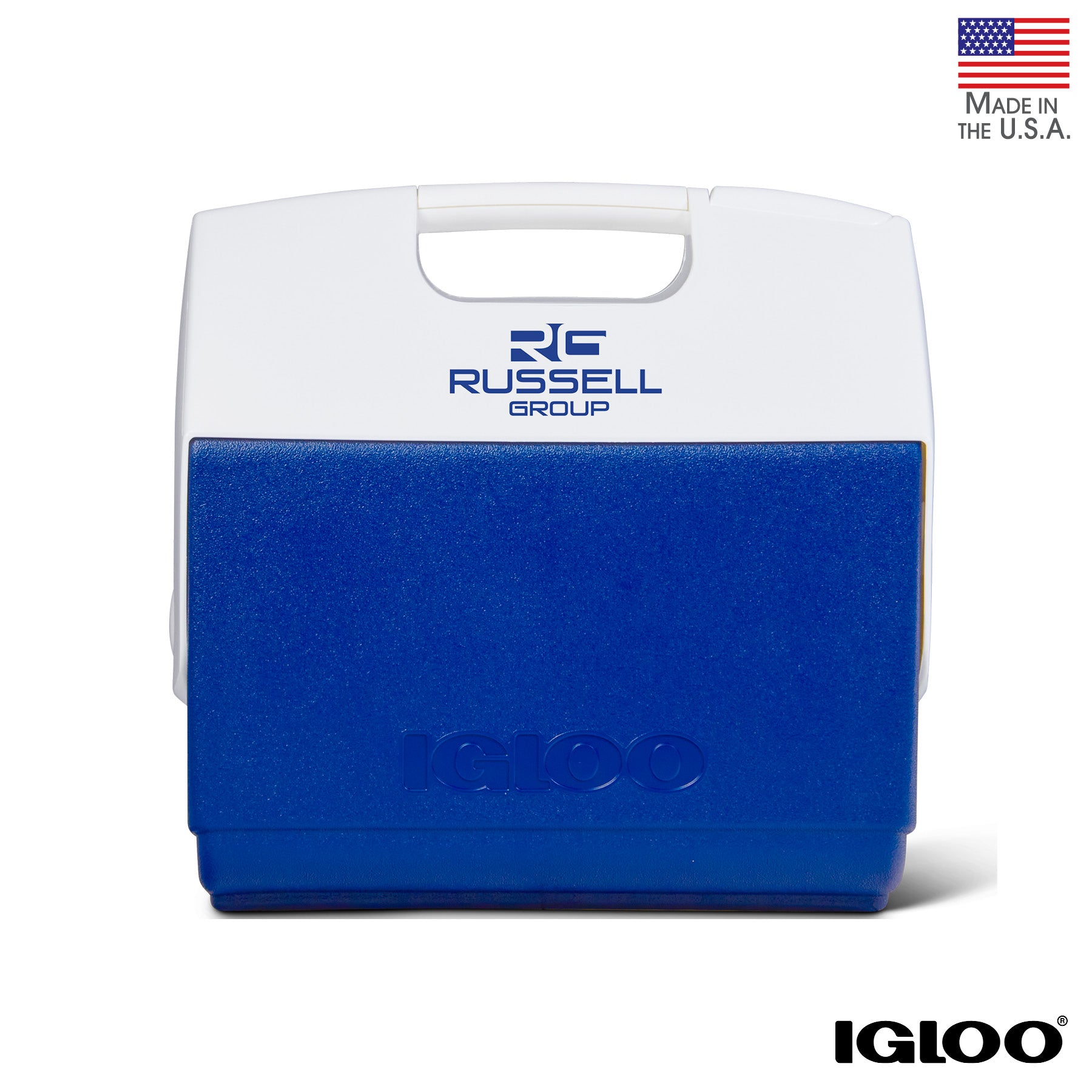 The Made in USA, Igloo® Playmate Elite cooler provides a large 16 qt capacity that holds up to 30 cans and its THERMECOOL™ foam keeps your food and drinks cold for extended periods. The iconic tent-top design lid is convenient to carry with its molded-in handle and is sure to capture attention while on the field, at the campsite or lunching at the park. The push-button lid was designed for one-handed operation and the lid swings open to either side for easy access, and locks in place while closed to secure the contents and help prevent spills. BPA Free and FDA compliant.