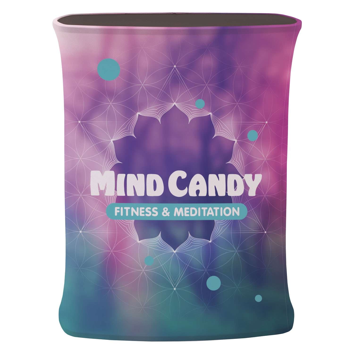 This easy-to-assemble counter features your full-color artwork on the outside and storage space on the inside.