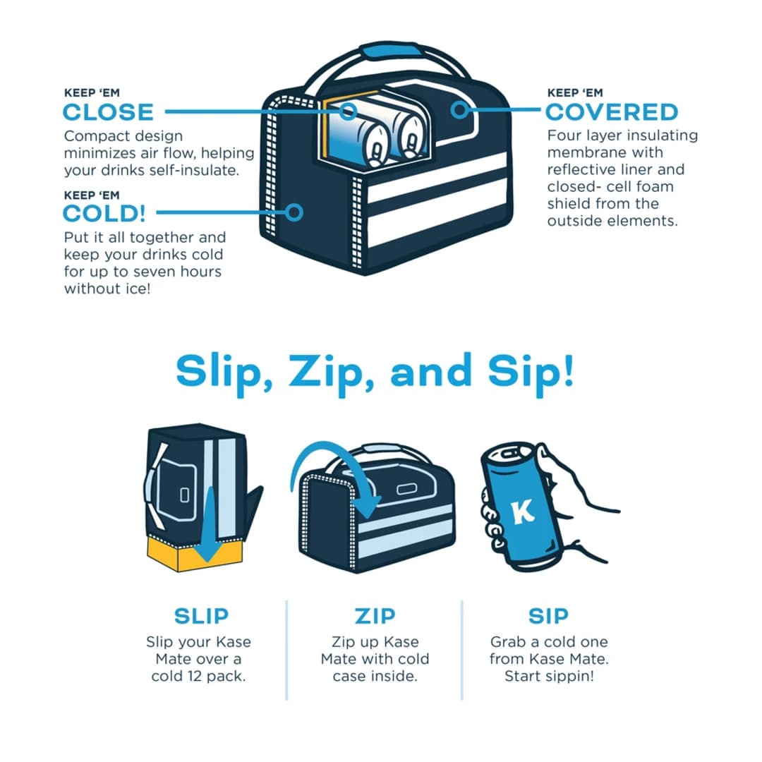 What’s worse than getting a text asking you to pick up ice on the way? Trick question, nothing. Skip the ice runs and keep your last beer as cold as your first with our 12-Pack Kase Mate Iceless Cooler. Grab your cold 12-pack of beer, soda, or seltzer from the fridge, slip the box inside your Kanga, zip it up, and sip on your chilled bevs for up to 7 iceless hours. Tear a hole in the top of your box and reach right in for another round thanks to our quick-access magnetic top flap. Super lightweight, this soft-body insulated cooler features a comfy top handle so you can grab it and go from the game to the great outdoors. Pro tip: Keep things extra cool when you grab a bev and swap our can-shaped Beer Block ice pack in its place. No ice needed…no seriously, don’t put actual ice in this bad boy or you’ll end up with a soggy party foul on your hands.