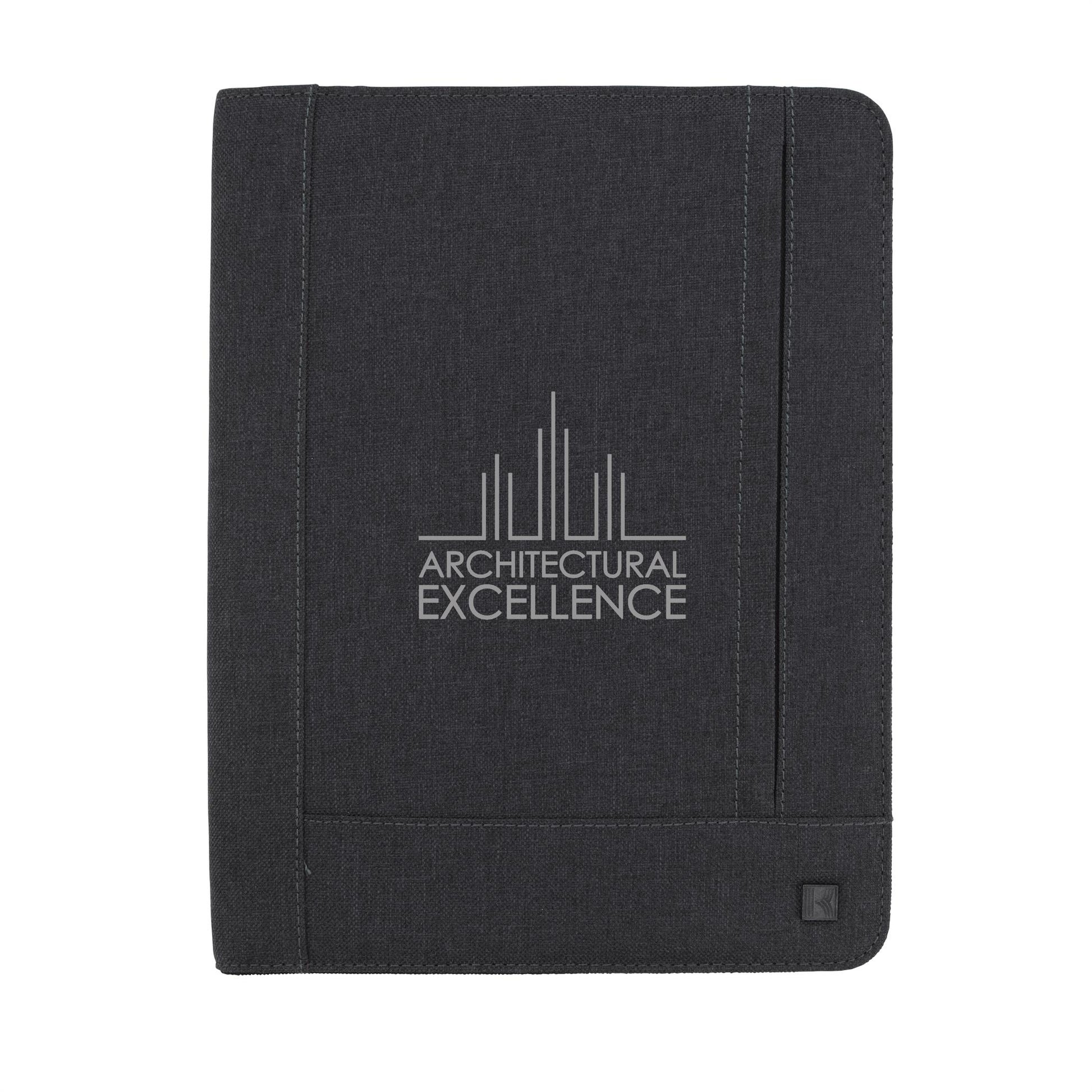 This two-tone padfolio is the perfect business accessory. Keep your notes and important documents handy with the 30-page FSC®-certified lined writing pad and interior organizational pocket so that you're ready for whatever your busy day sends your way. The FSC® label means that the materials used for this product come from well-managed FSC®-certified forests and other controlled sources.