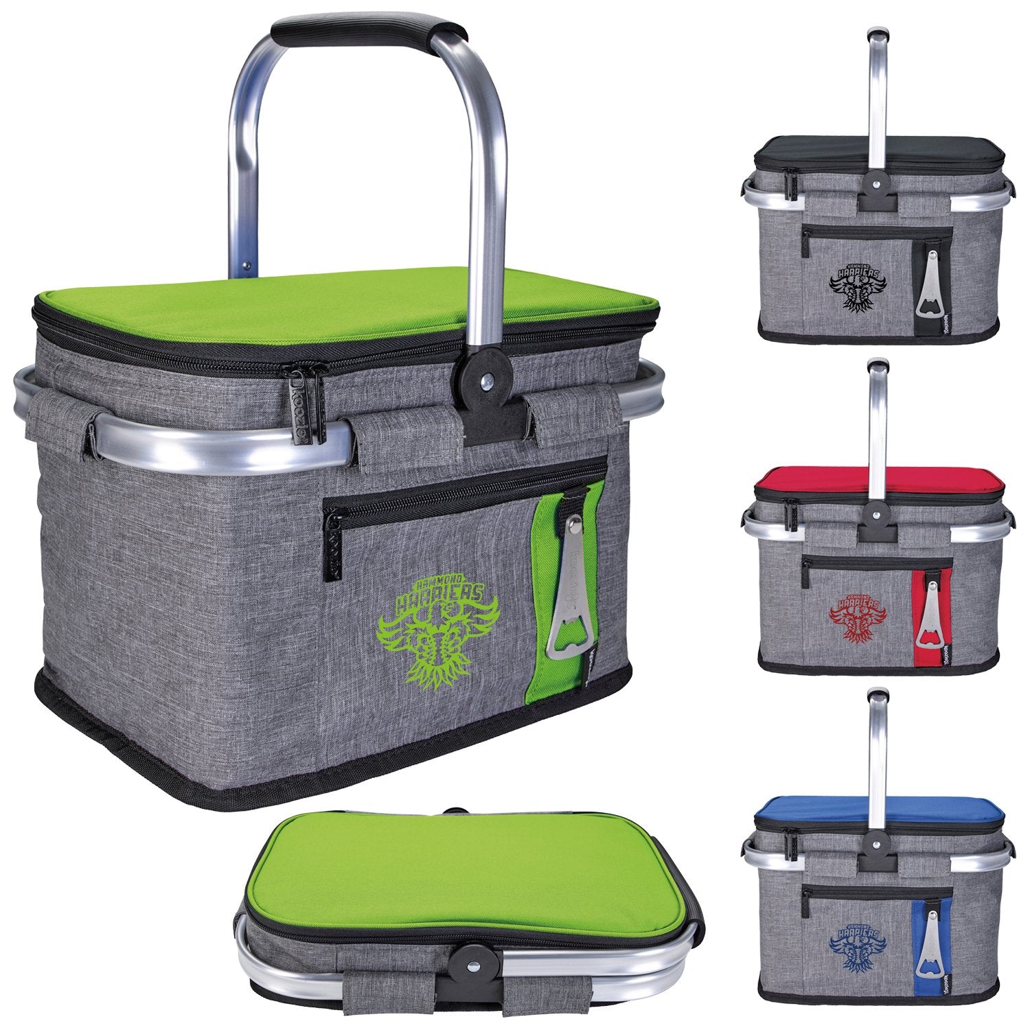 The modern-looking Koozie® Collapsible Picnic Basket is an ideal solution for smaller groups. It comes equipped with a heat-sealed PEVA liner and double zippers to easily access your chilled drinks and snacks, as well as a built-in bottle opener. The perfect basket for a day trip or an afternoon at the beach!