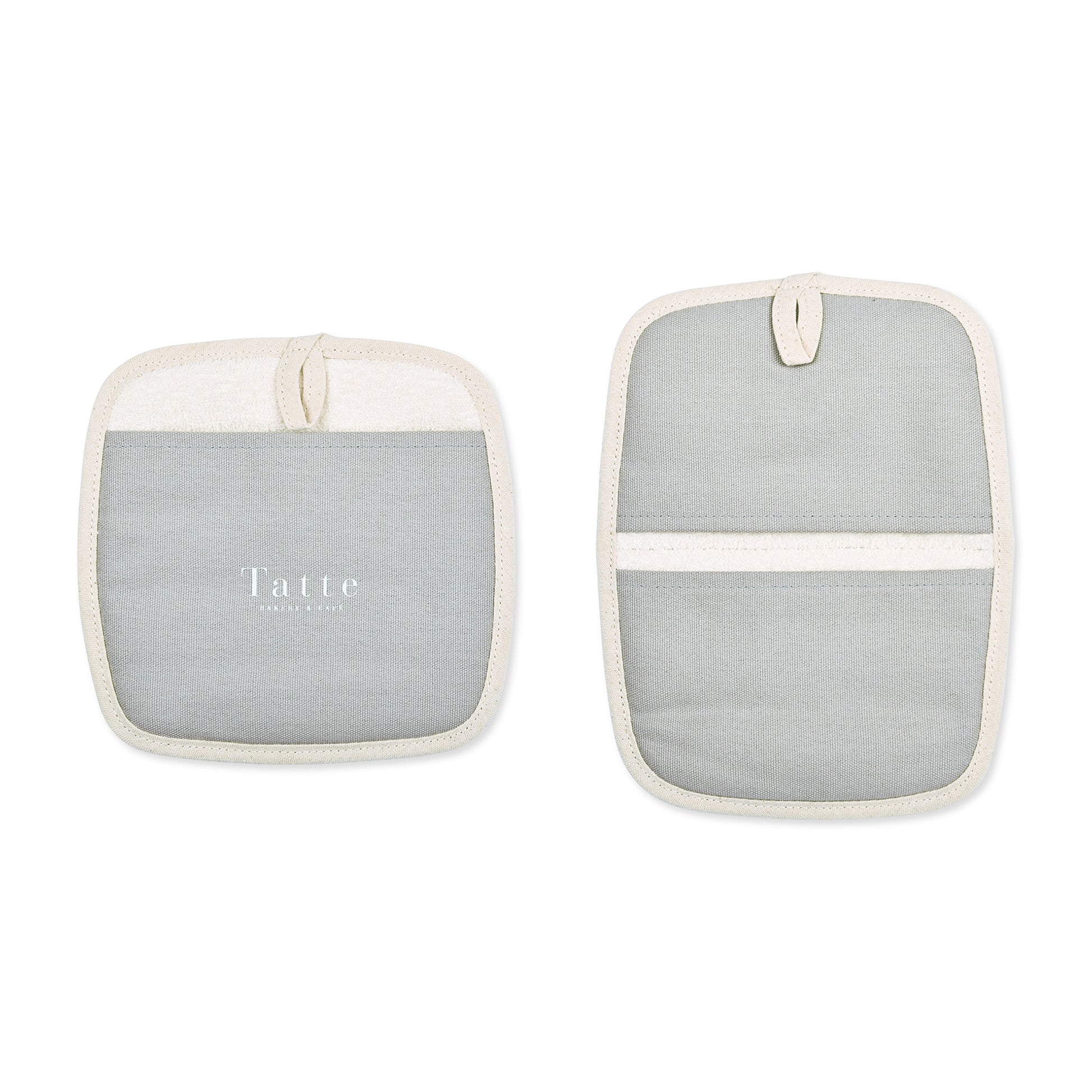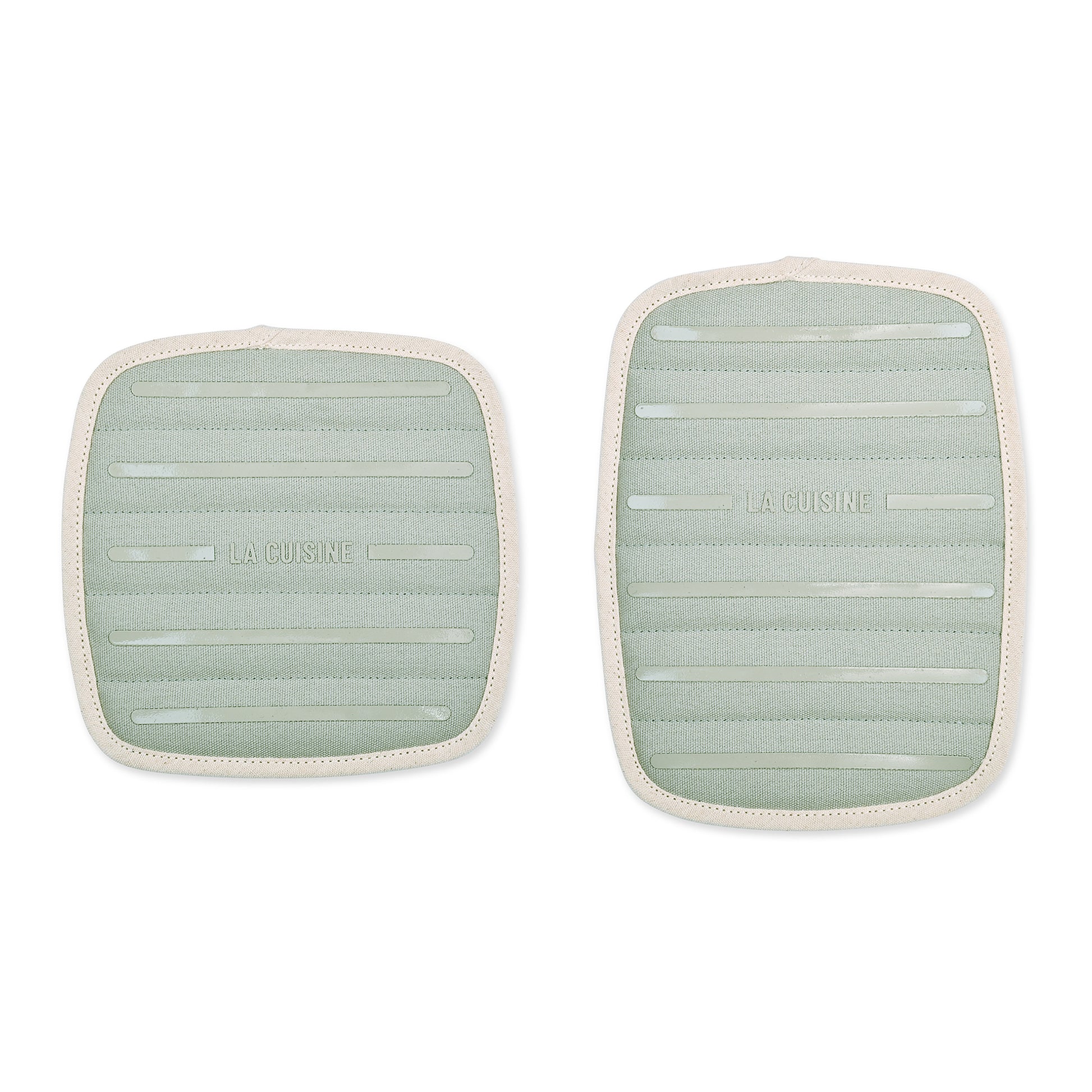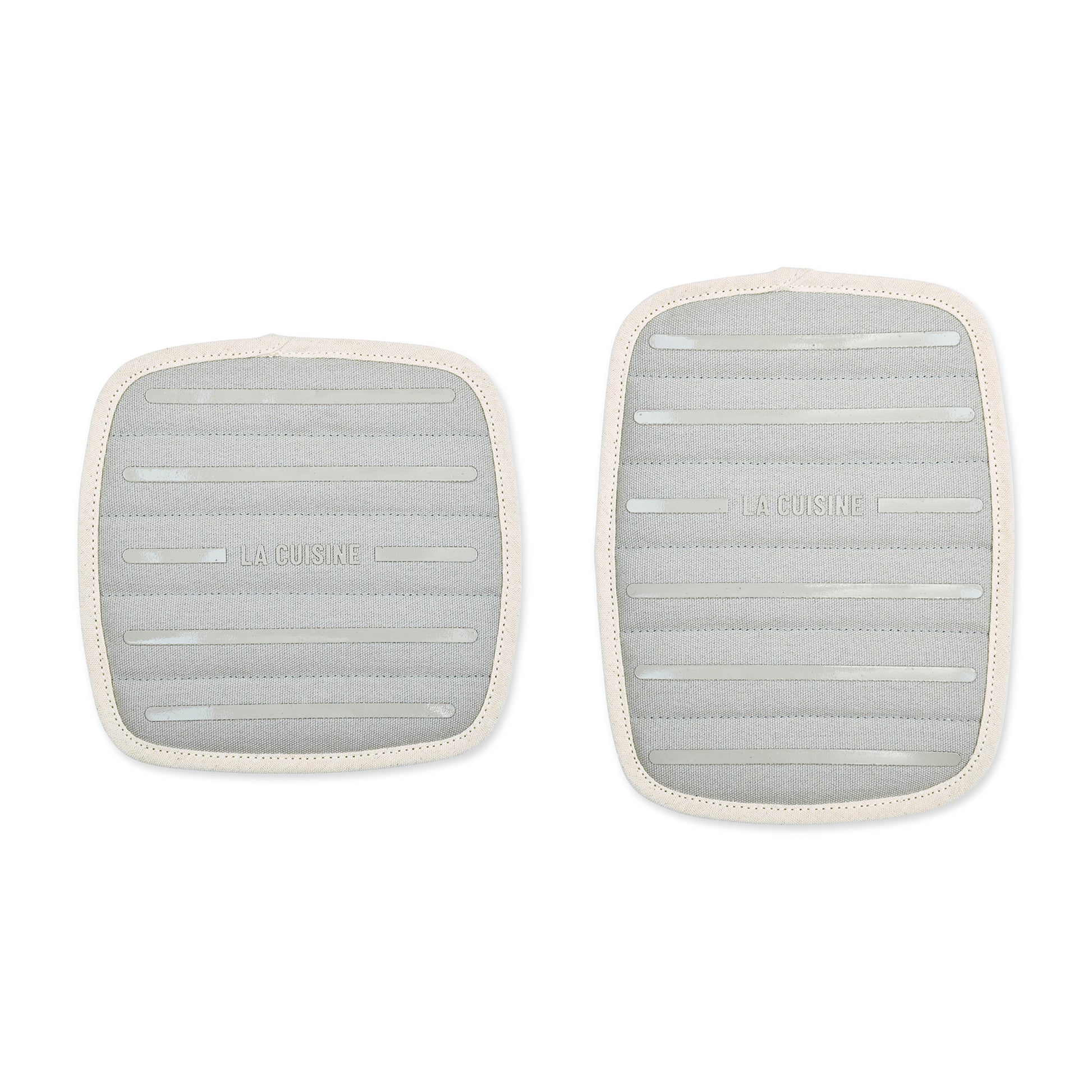 Can’t stand the heat? No need to leave the kitchen, just reach for one of these! The La Cuisine Potholder set includes 2 premium potholders to keep your hands safe from hot pans. Both sizes feature a non-slip silicone print and can double as trivets to protect your table too. Hang loops for easy storage. Soft terry-cloth interior lining. Silicone print for non-slip grip. Doubles as a trivet. Heat safe up to 400'F. Machine washable.