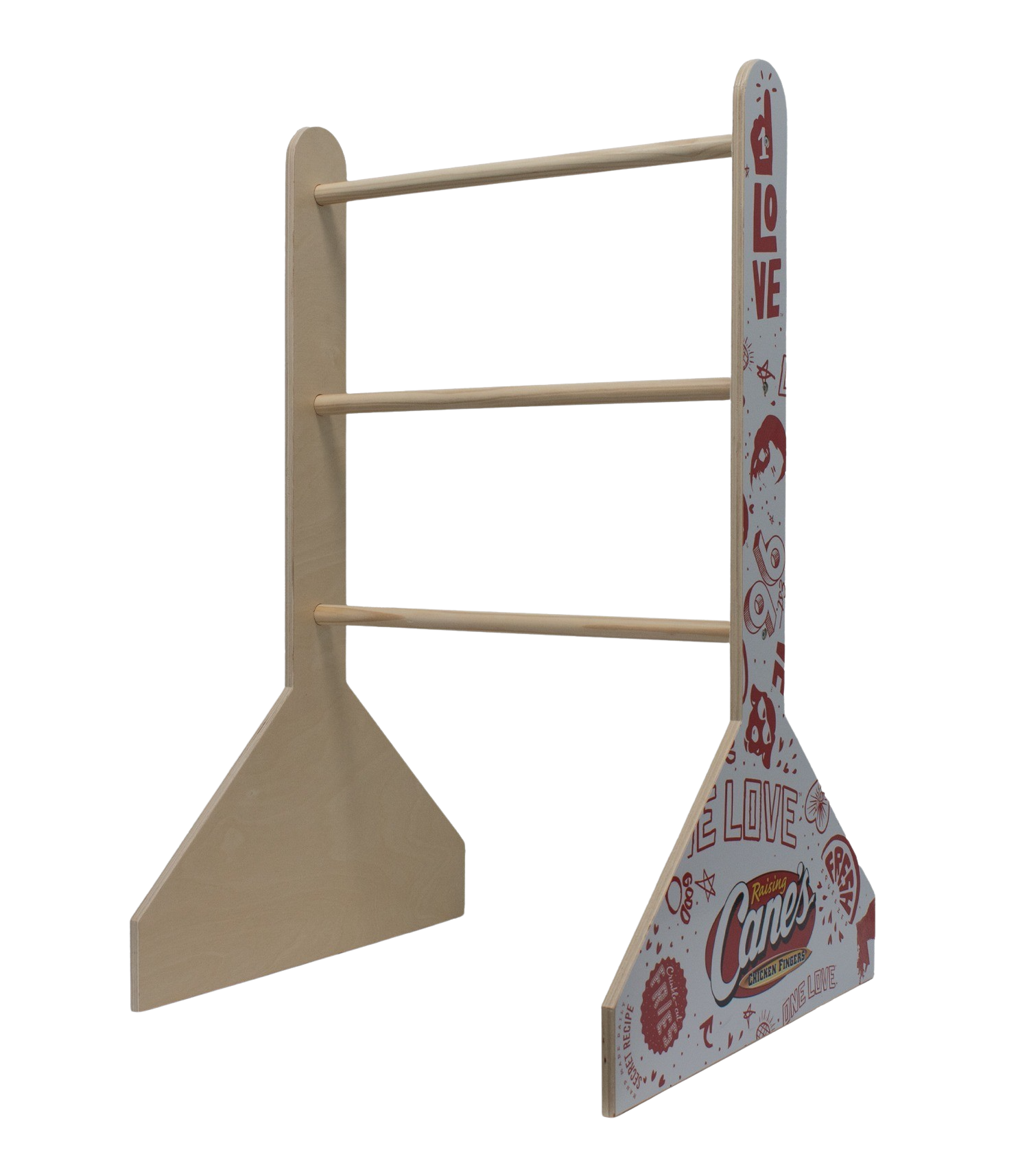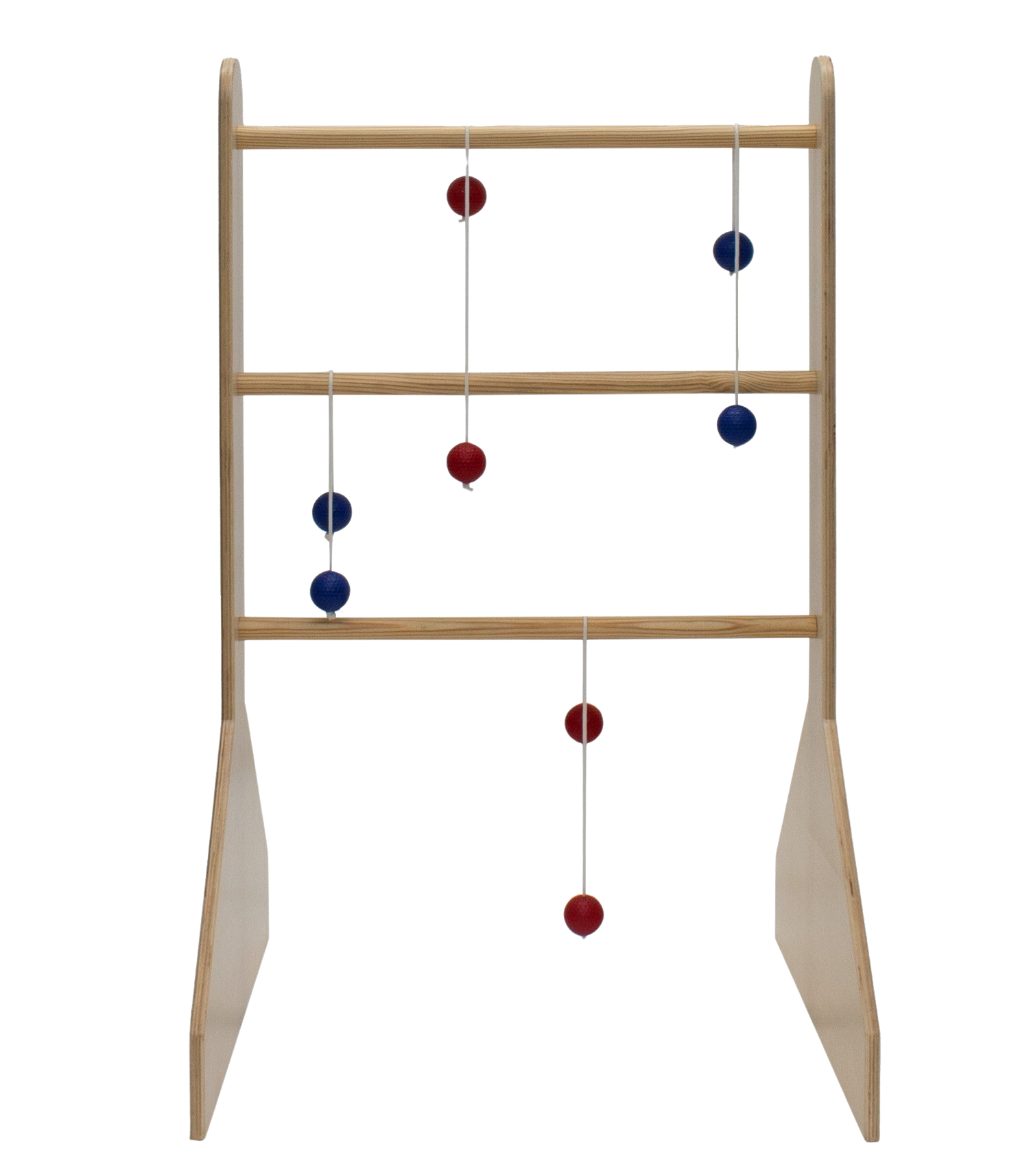 Bring fun and competition to your next event with the Ladder Ball Toss Game. Made from durable wood with wide legs designed for prominent branding, this classic game is perfect for outdoor gatherings, parties, and team-building activities. The set includes 6 bolas (royal blue and red). Assembly is quick and easy, you'll be challenging your friends and family to a game of skill and precision in no time. Enjoy hours of entertainment with this timeless backyard game.