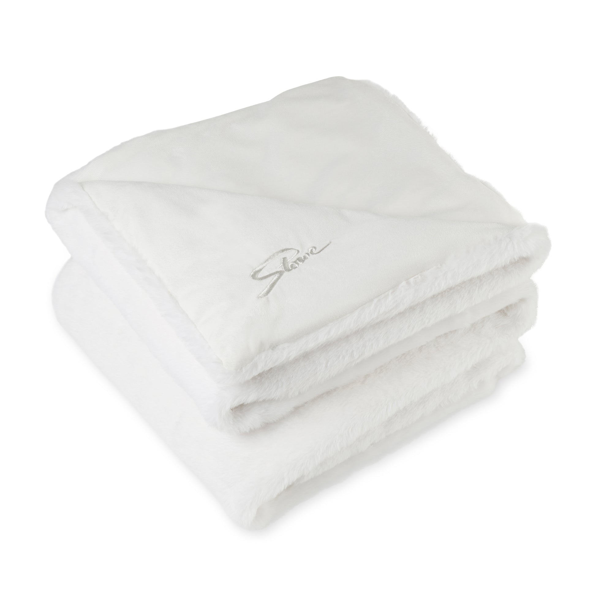 With unrivaled softness, this oversized throw blanket is a luxurious and sophisticated purposeful gift that defines cozy. The short, dense faux fur offers modern styling and is alluring and elegant when draped over a sofa or armchair. Opposite the faux fur is a solid velvety smooth finish that provides a perfect opportunity for embroidery.