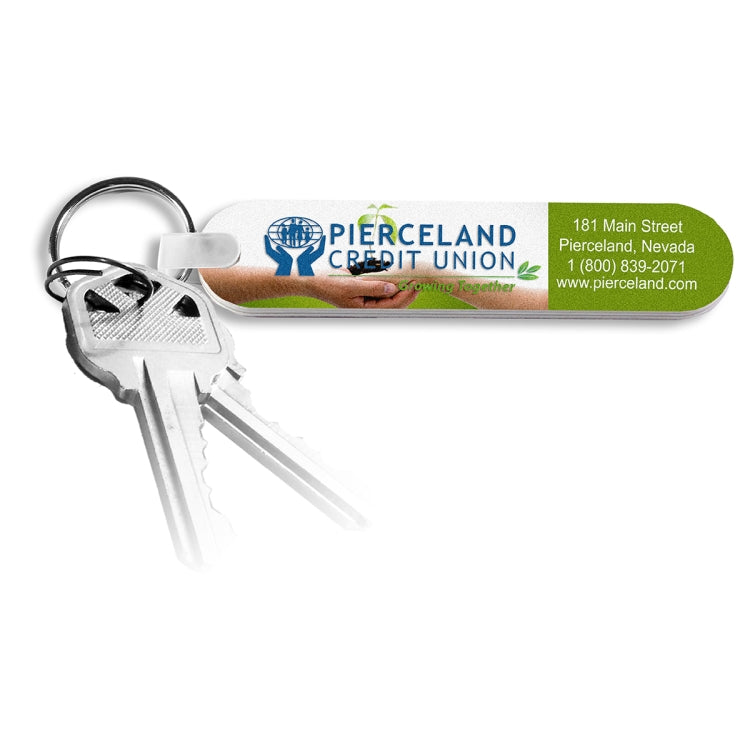 Keychain style extra thick EVA foam Nail File with grit on both sides. The thicker foam base is a nice upgrade to old fashioned emery boards. Price includes up to a Full Color PhotoImage™ Imprint with only one low setup charge. More Colors, Same Price! 2nd side imprint also available at additional charge.
