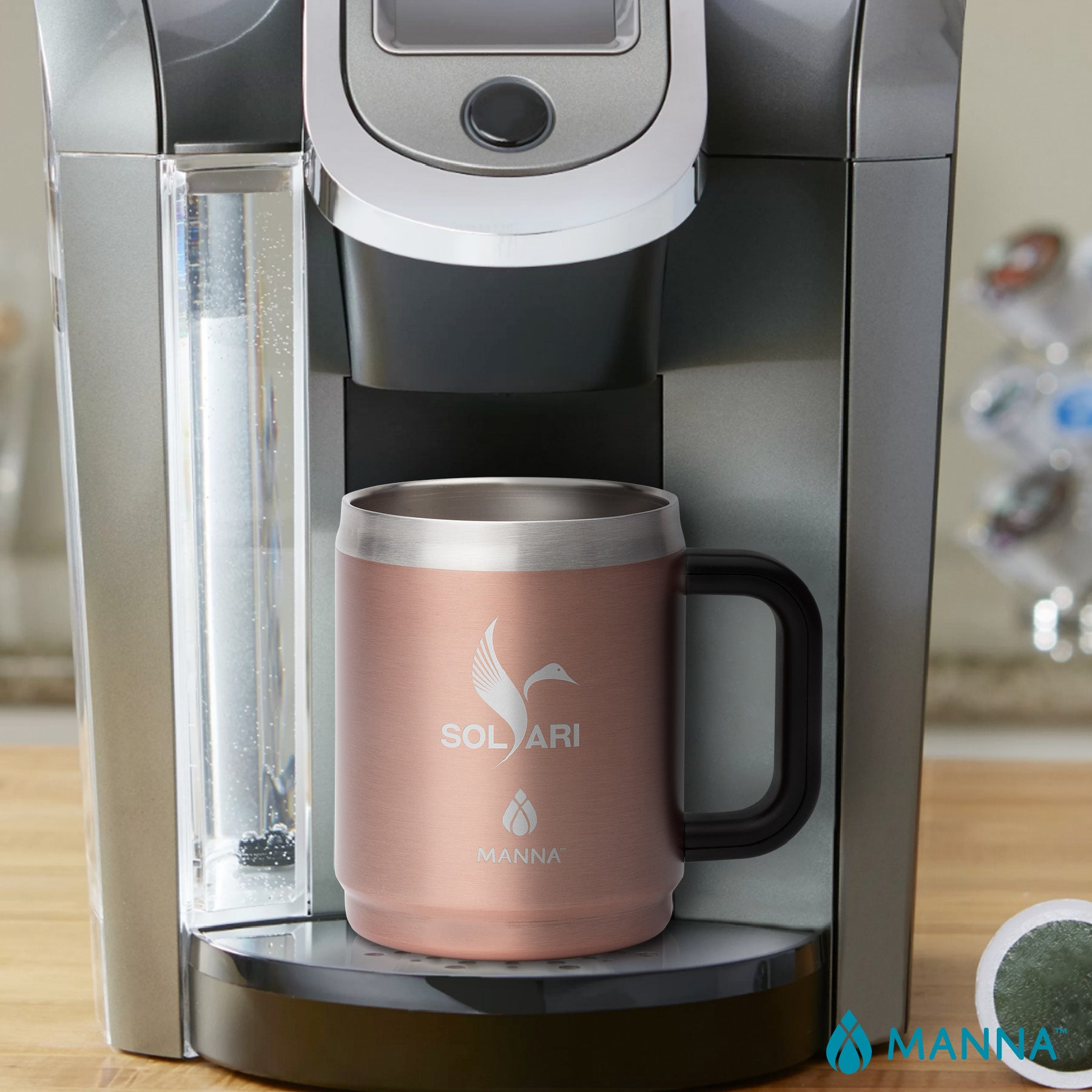 The Manna™ Boulder 14 oz. double wall handled stainless steel camping mug has a pressure-fit lid with sliding closure. Take this mug on your next outdoor adventure as it is vacuum insulated and will keep your hot tea hot for 8 hours and your ice-cold water cold for 12 hours. It is excellent for home use as well, and compatible with most single serve coffee machines. The Boulder is FDA compliant and BPA Free.