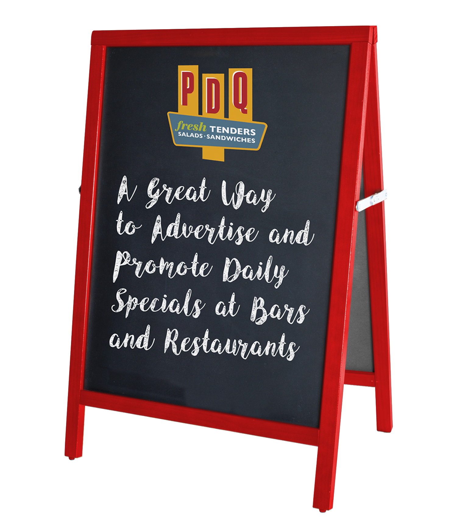 Don't let them pass you by! Bring attention to your shop or event from the sidewalk with this classic A-framed chalk board. Available in Black or Brown Wood frames and feature durable steel hinges.