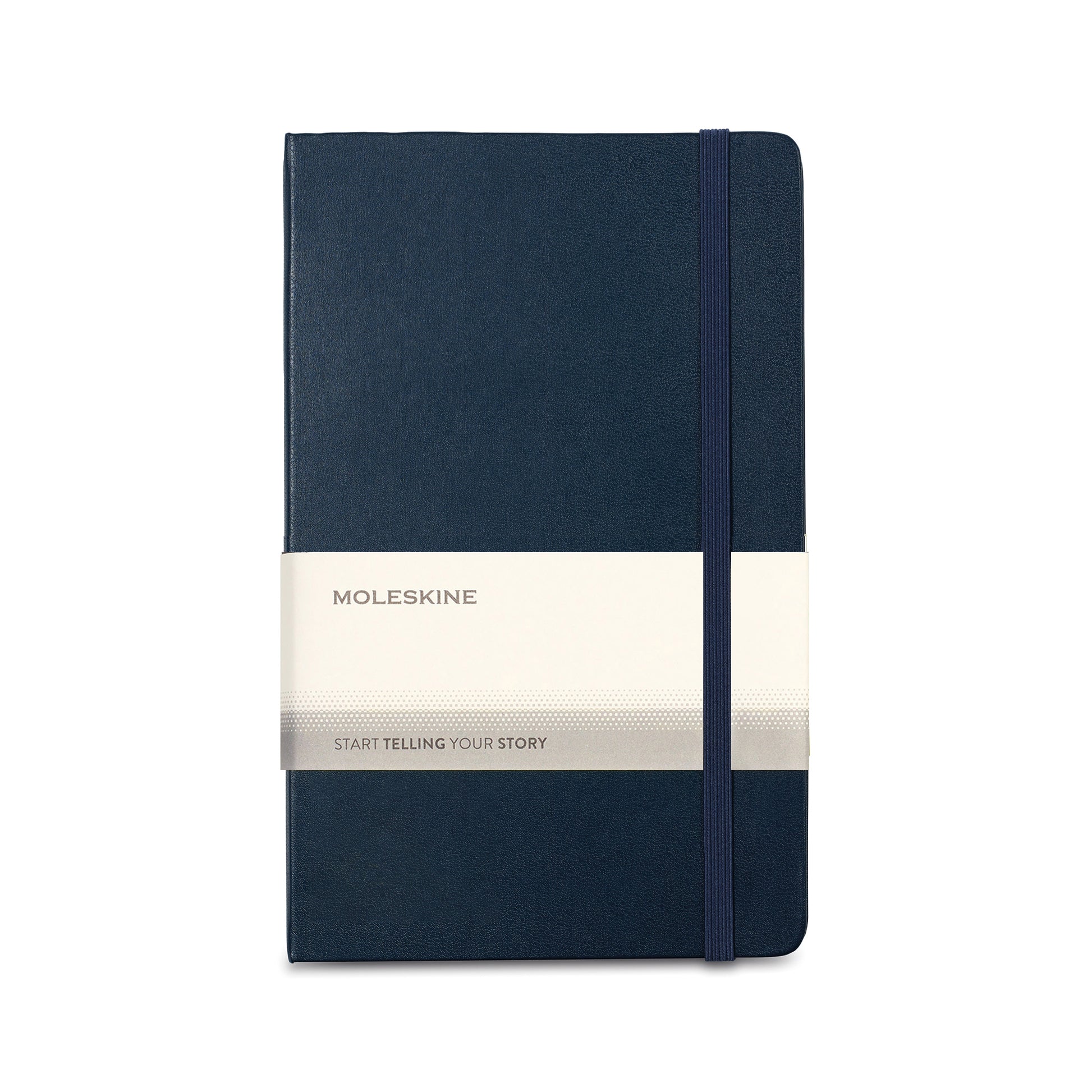 This expanded version of the Classic Notebook has 400 pages and 2 ribbon bookmarks to capture and keep track of more ideas than ever. Double ribbon bookmark. Ruled format. Expandable inner pocket Ivory-colored 70 g/m² acid-free paper. 400 pages (200 sheets). Notebooks come packaged with a Moleskine branded paper band and are individually shrink wrapped. Add a Custom Band (Item # 505).