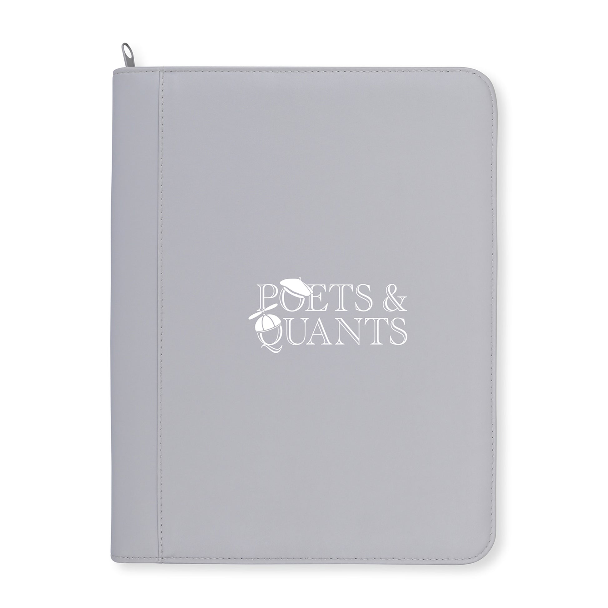 Stay organized in style. The Morgan Executive Zippered Padfolio combines modern design with everyday functionality. Crafted from vegan leather, it features card and ID pockets, cord management storage, a receipt pocket, and an elastic pen loop (pen not included). A secure zip closure keeps everything in place, and it comes with an FSC-certified 8.5" x 11" paper pad. PVC free.