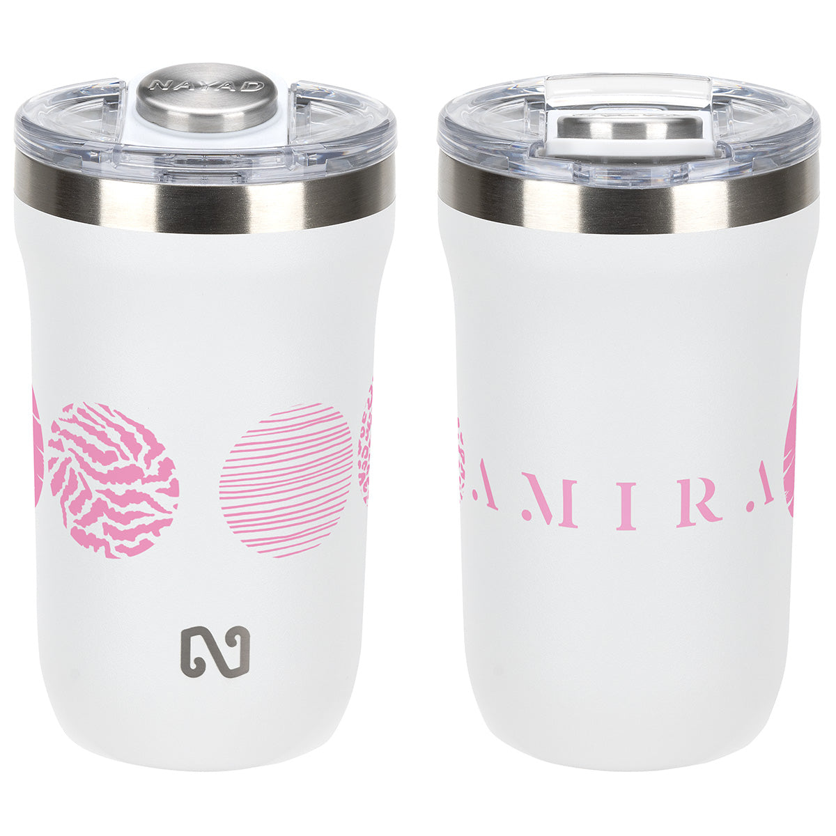NAYAD® Wai 12 oz Double-Wall travel mug is crafted with 18/8 rust-free stainless steel and a condensation-free , matte powder-coated finish. The wide-mouth lid, made of 100% BPA-free Tritan™ plastic has a color matched silicone sliding lid. Double-wall insulated and copper-lined to keep beverages hot or cold for up to 6 hours. A compact design is compatible with most single-serve coffee makers. Its convenience extends to car and truck cup holders. Hand wash only. Certified by the FDA.
