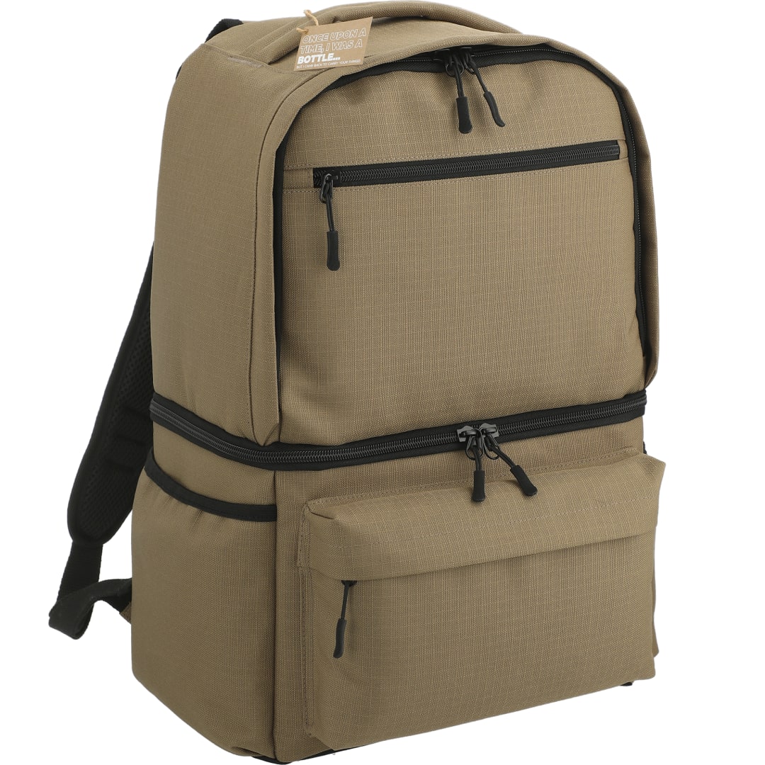 Carry all your essentials with the NBN Recycled Utility 12 Can BP Cooler! With the adjustable black padded shoulder straps and back panel, this backpack cooler makes for a comfortable carry while keeping your items cold. This also features two side cup holders, two front zipper pockets, a main compartment with pockets for extra storage and a full black PEVA-lined insulated bottom compartment.