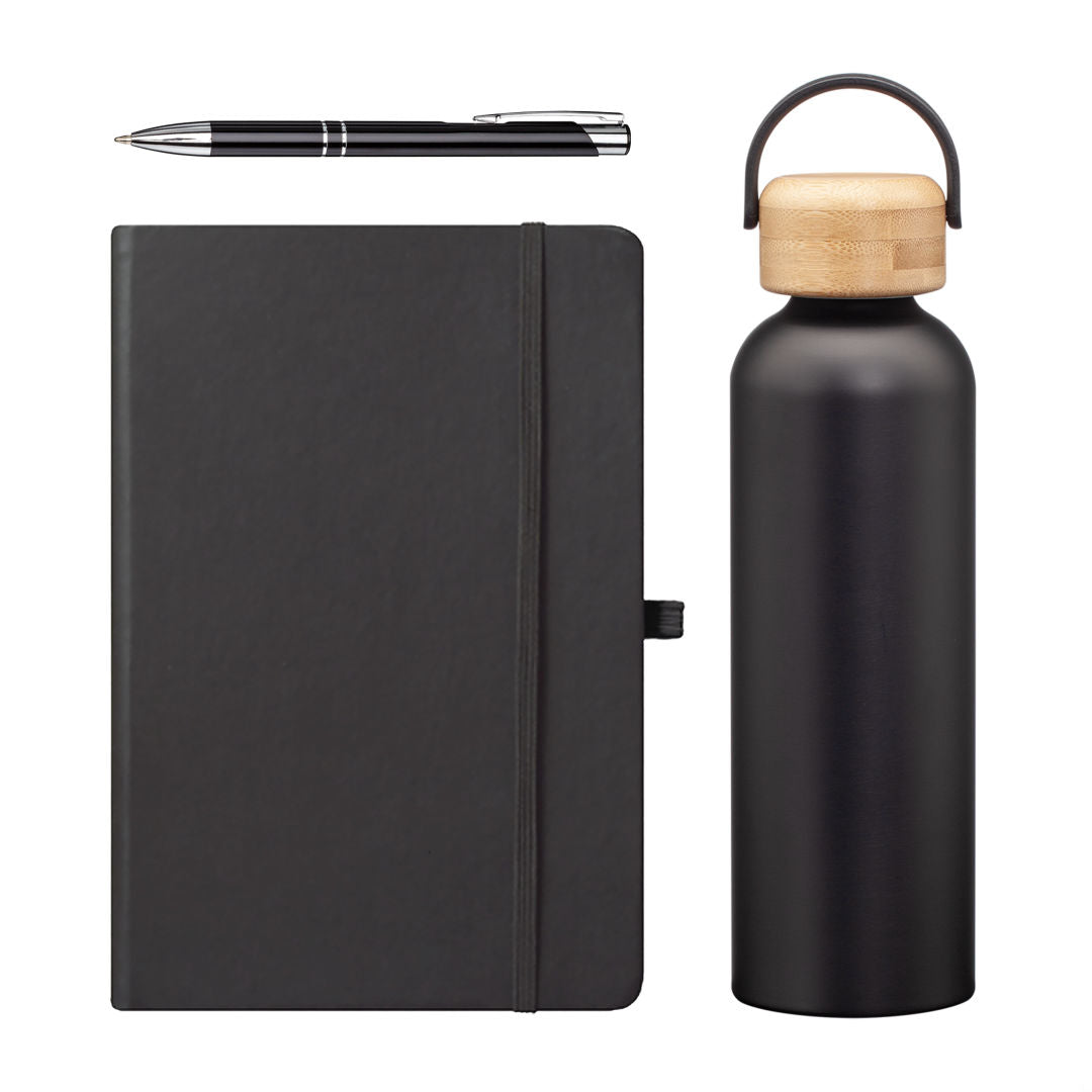 The Starter Onboarding Set is the perfect way to welcome new hires with thoughtfully selected essentials. It features our best-selling Greenstone Bottle for all-day hydration, the stylish Eccolo Cool Journal for ideas and notes, and our reliable Clicker Pen for effortless writing. Designed to combine practicality and style, this set ensures new team members feel valued from day one. Branded and beautifully packaged, it’s the ideal introduction to your company culture.