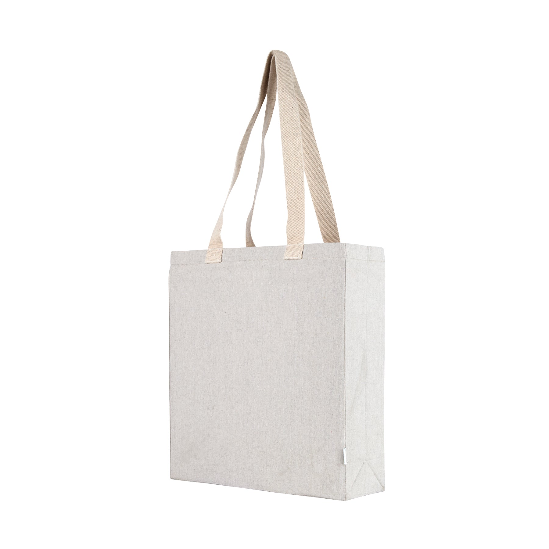 Eco-friendly and versatile, the Olivia 10 oz. Tote Bag is made from 2-tone recycled cotton and provides everyday convenience. The 4 1/4" gusset provides ample room for groceries, books, or daily essentials, while its sturdy 1 1/2" x 27" cotton handles offer a comfortable grip. Designed for durability and easy care, this bag combines style with sustainability.