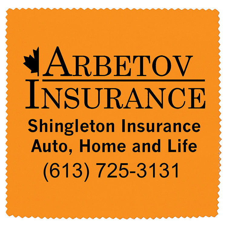 These 100% microfiber cleaning cloths are made with high-density RPET Recycled Polyester? microfiber materials designed to remove dirt, dust, and oily smudges from sensitive surfaces like sunglasses, eyeglasses and camera lenses, cell phone, tablets, laptop and computer screens without scratching. Comes with serrated edges. We imprint directly on the cloth instead of a throw away pouch. Also available with a Full Color, full bleed, Sublimation Imprint – Domestic see item # 5088. Optional Clear Blank Pouch: Add $0.35 (G). Microfiber folded and Inserted in Pouch. Disclaimer: We cannot guarantee aligned fold. Logo and copy printed on cloth may not be 100% viewable once folded and inserted into pouch. Add 1 Day Production. One Color imprint on Pouch: Add $0.25 (G), plus $55.00 (G) Setup charge. Add 2 days production. Pouch Size: 4” W x 2-3/4” H. Pouch Imprint Area: 3 1/4” W x 1-3/4” H.?