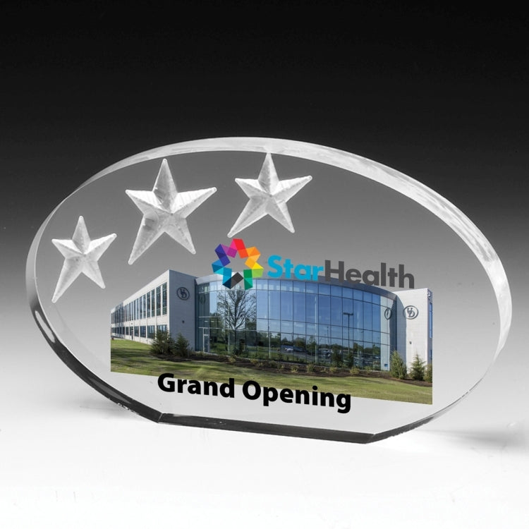 The Deep Etching Process carves robust stars into these acrylic awards creating depth and dimension. They can be Screen Printed, Laser Engraved or 4 Color Process Printed.