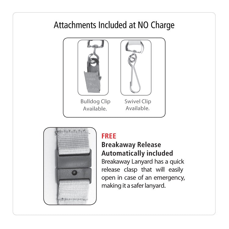 A 3/4" width Super Soft Smooth Satin polyester lanyard with a full color sublimation imprint on the outside and inside of the lanyard included in the price. These lanyards are produced in our overseas factory and air shipped directly to your customer. View Lanyard Attachments image for attachments included and optional as well.