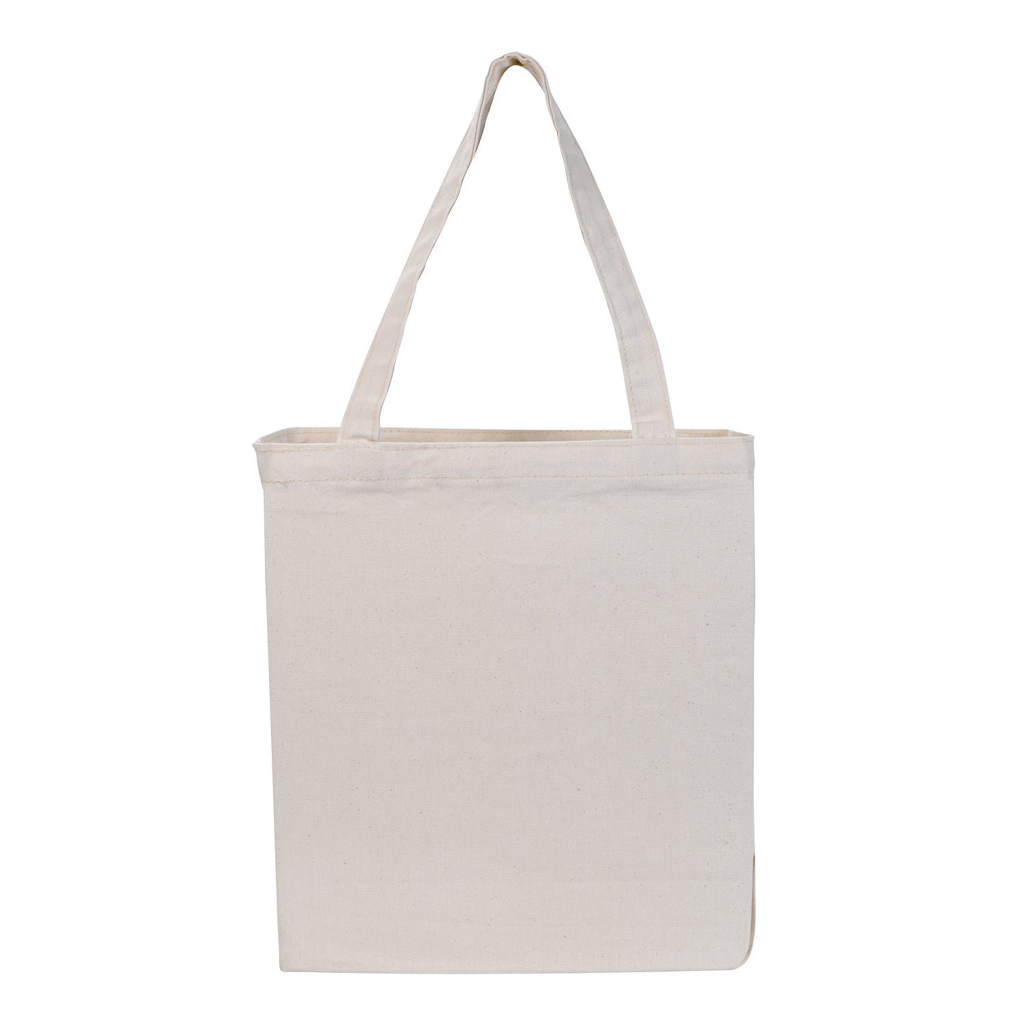 Show your American pride with this cotton canvas tote that is 100% made in the USA, right down to the thread! Take it on errands to the store or library or tuck away some essentials for a day trip. Thanks to this reusable bag's gusseted bottom, you'll have plenty of space.