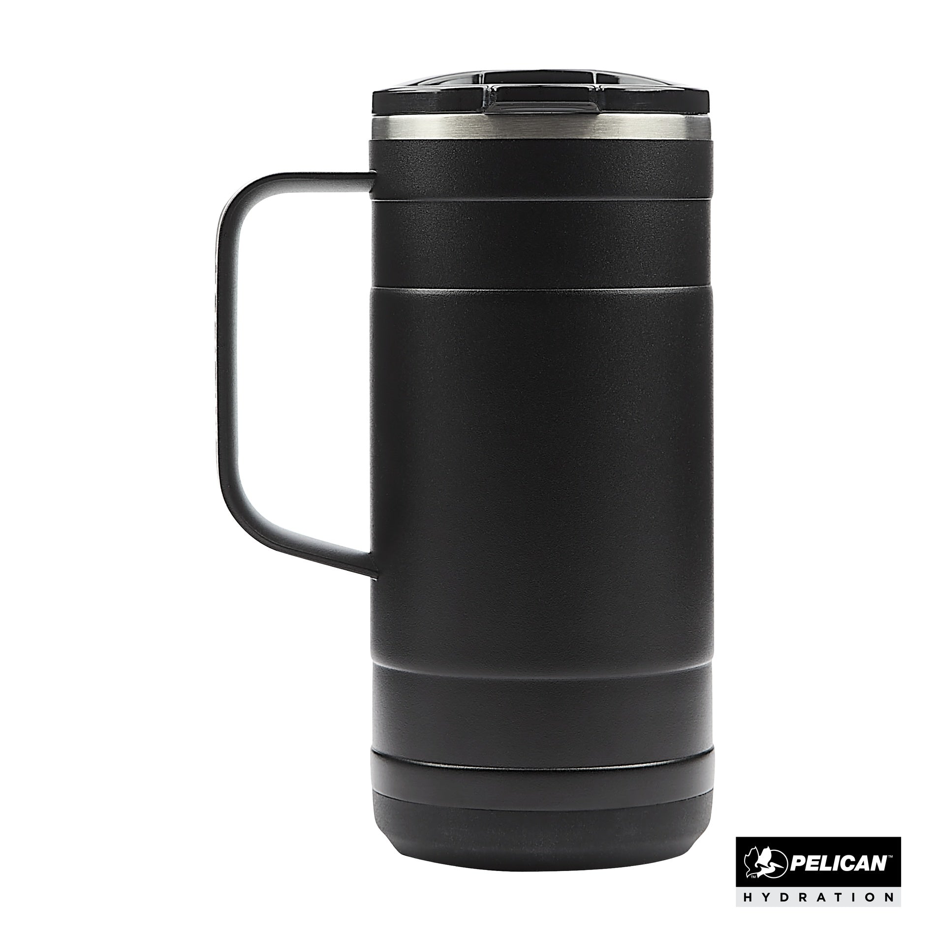 Whether sipping a hot cup of tea in the morning or a freshly brewed iced coffee in the afternoon, the 18 oz. Pelican Ridge™ Travel Mug provides you with a great drinking experience no matter where you are. Made from high-quality pro-grade 90% recycled 18/8 stainless steel, this sustainable hydration choice has copper lining and vacuum insulation that keeps drinks hot for 6 hours or cold for 12 hours. It not only looks great in the great outdoors but will fit most car cup holders making it a perfect commuting or road trip companion. The unique two-tone push-on lid with slider closure is splash resistant and has a translucent top so you can see just how much drink you have remaining. The Pelican Ridge™ also features a removable silicone base that provides extra stability and protection from bumps and scrapes, an ergonomic steel handle and a durable and protective powder-coat finish. FDA compliant and BPA Free. U.S. Patent No D1078390.