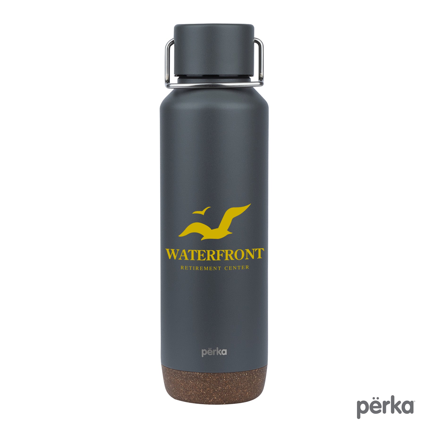 The Perka® Cabrillo 24 oz. Water Bottle is the perfect hydration companion as it has 304 food grade, double wall steel construction with vacuum seal and copper lining for extra insulation. The exterior of the bottle is powder coated to reduce sweating and surface scratches, and the steel cap has a hinged steel carry handle for easy travelling. The Cabrillo also features an anti-slip cork base for table top protection and the bottle fits into most car cup holders. Liquids stay hot for 12 hours and cold for 24 and this bottle is FDA Compliant and BPA Free. A portion of all proceeds is donated to Shelter to Soldier™, a non-profit organization that rescues dogs to train as service animals for veterans in need.