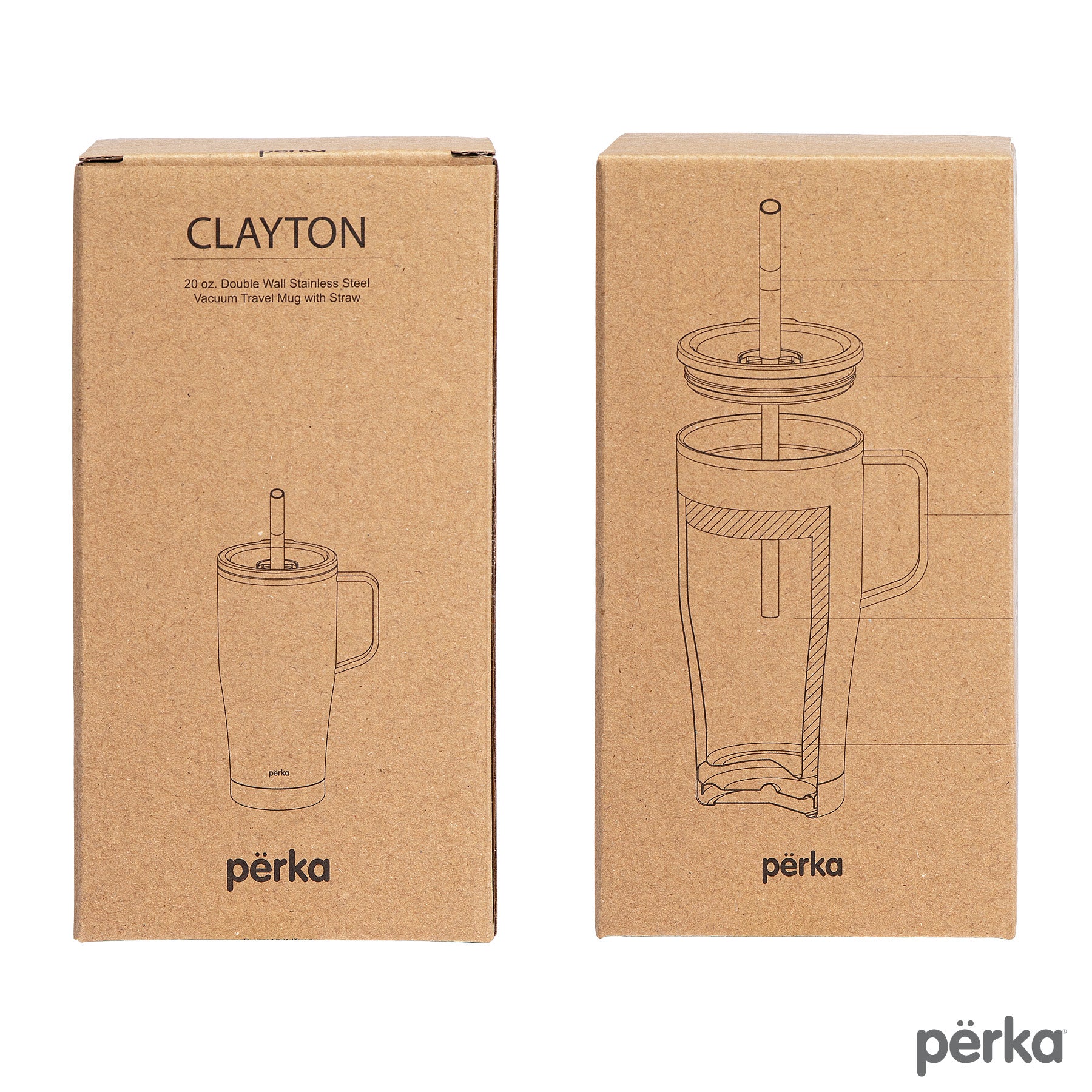 The 20 oz. Perka® Clayton Travel Mug is a great commuter's mug for coffee and tea drinkers alike. It’s designed with a comfortable handle for holding and drinking and the curved body shape is compatible with most car cup holders. The mug is made of 18/8 stainless steel and its vacuum insulated double wall construction keeps your cold drink cold for 24 hours and hot drink hot for 12 hours. The mug features a spill-proof slider lid for sipping hot drinks and a food-grade stainless steel straw with curved silicone tip for cold drinks. It has a durable powder coating finish and is FDA compliant and BPA Free. A portion of all proceeds is donated to Shelter to Soldier™, a non-profit organization that rescues dogs to train as service animals for veterans in need.