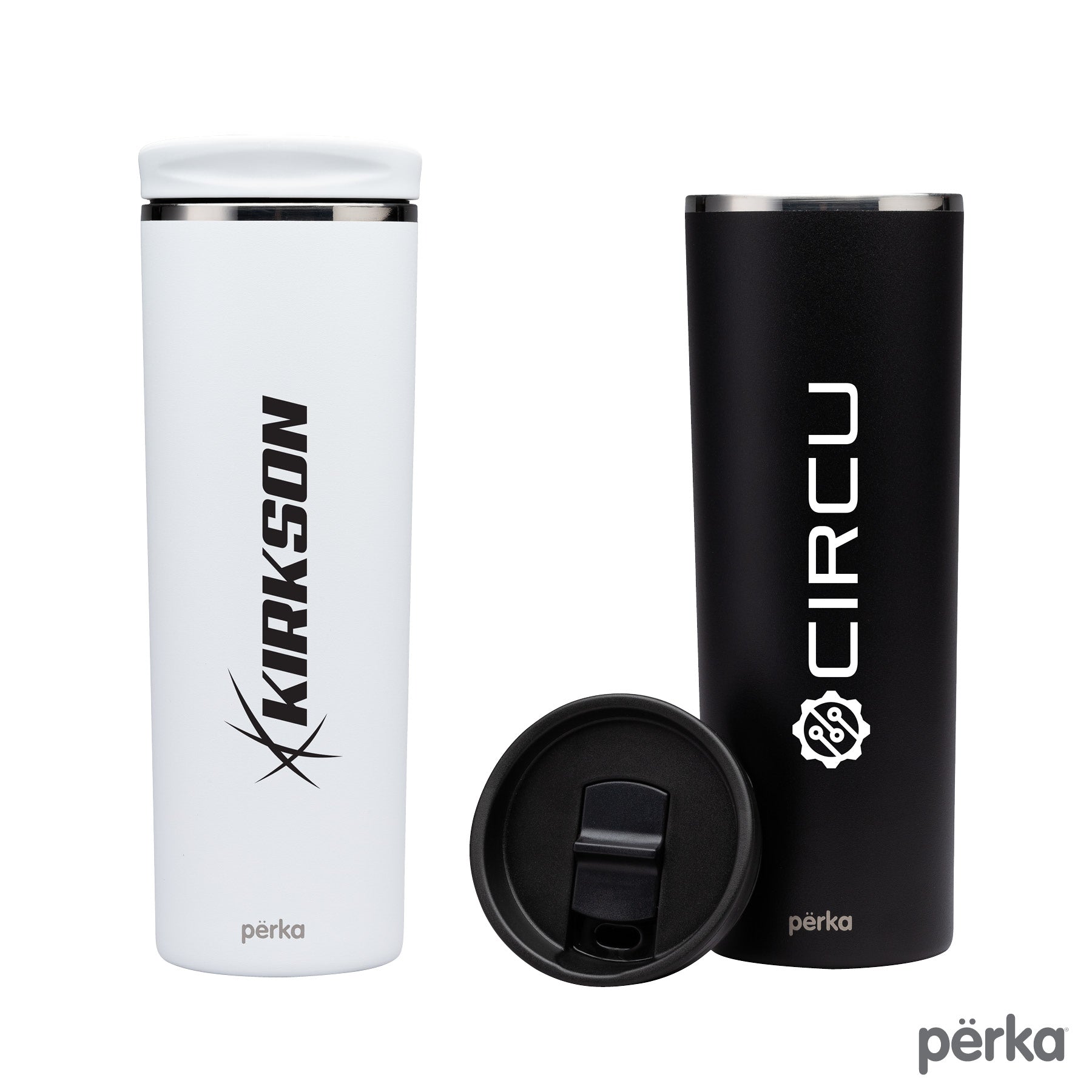 The Perka® Moderno Stainless Steel Tumbler is a morning commuter’s dream come true with its leak proof sliding closure lid and vehicle cup holder-ready profile. Its double wall vacuum sealed construction with 304 inner keeps your drink hot for 24 hours and cold for 12 hours. It has a sleek and modern straight body, a screw top lid, and durable powder coated finish that provides a comfortable grip. This 20 oz. tumbler is sized to fit most car cup holders and is FDA compliant and BPA Free. A portion of all proceeds are donated to Shelter to Soldier™, a non-profit organization that rescues dogs to train as service animals for veterans in need.