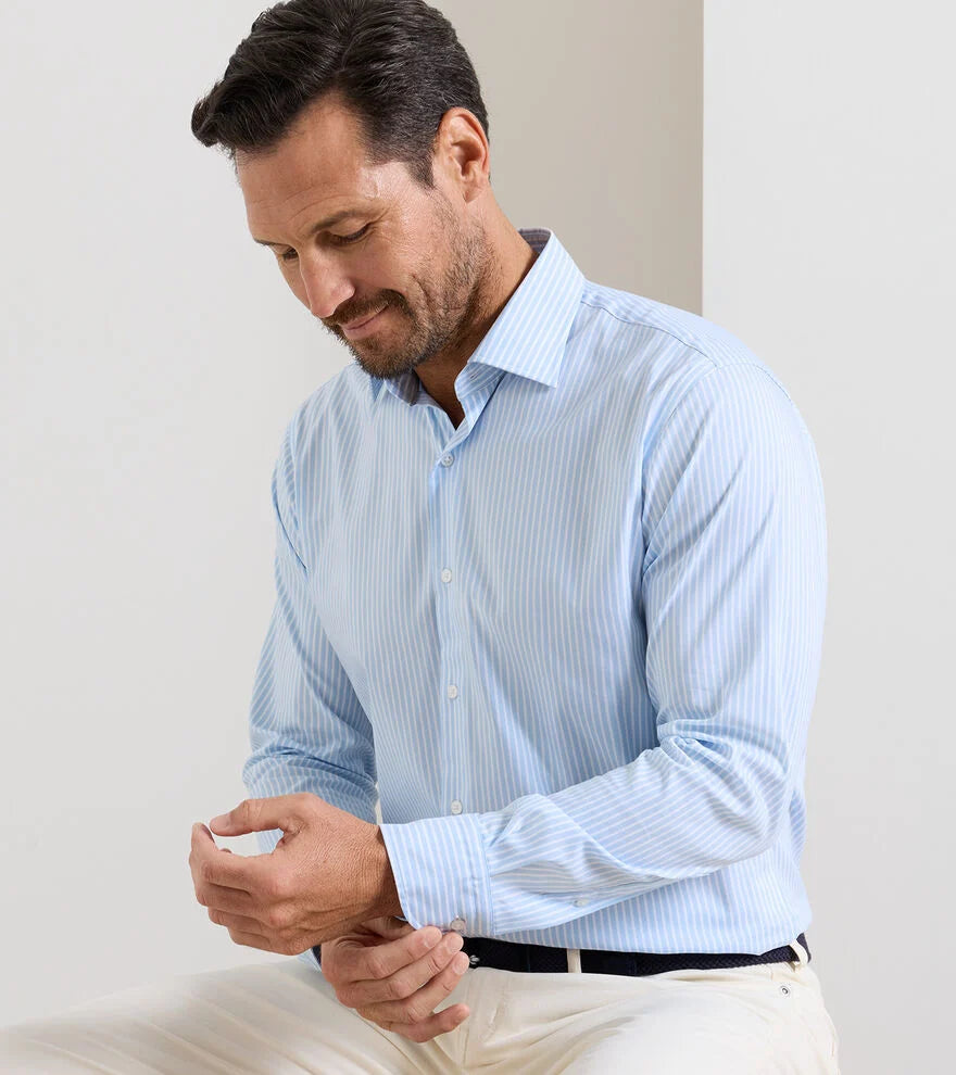 These work-to-weekend favorites offer the classic look and feel of a traditional twill shirt in a crisp stretch cotton fabric with easy-care and wicking properties. Finished with a spread collar. Features: Men's 42% Cotton / 36% Nylon / 17% Lyocell / 5% Spandex sport shirt. Natural look and feel. Moisture-wicking & easy-care properties. Machine wash cold with like colors; lay flat to dry.