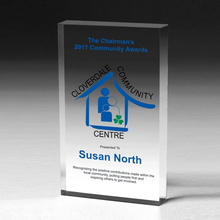 These paperweights utilize a state of the art printing process to create beautiful, but economical, four color graphics. The printing is on the backside so that the images appear to float inside the paperweight. Full bleed artwork is not required. They are available in 1/2" and 3/4"? thicknesses and can also feature? Digital Personalizations if required.