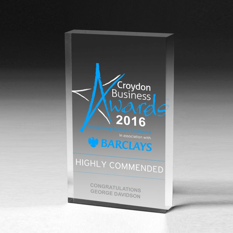 These paperweights utilize a state of the art printing process to create beautiful, but economical, four color graphics. The printing is on the backside so that the images appear to float inside the paperweight. Full bleed artwork is not required. They are available in 1/2" and 3/4"? thicknesses and can also feature? Digital Personalizations if required.? Made in china add the Manufactured & Assembled in the USA.
