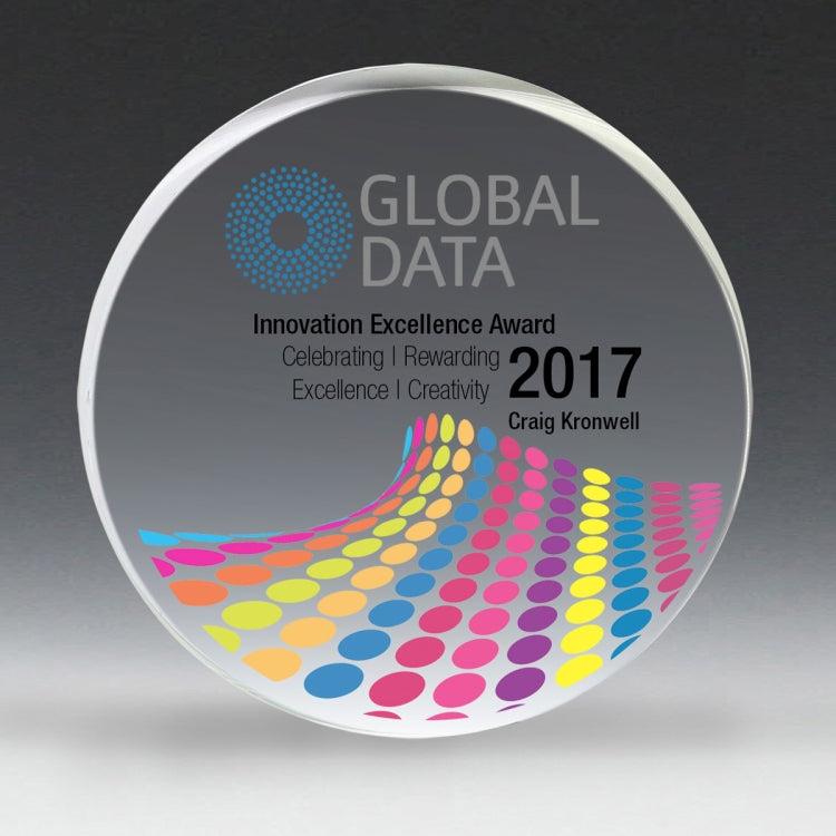 These paperweights utilize a state of the art printing process to create beautiful, but economical, four color graphics. The printing is on the backside so that the images appear to float inside the paperweight. Full bleed artwork is not required. They are available in 1/2" and 3/4" thicknesses and can also feature Digital Personalizations if required.