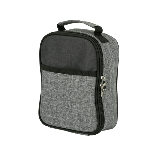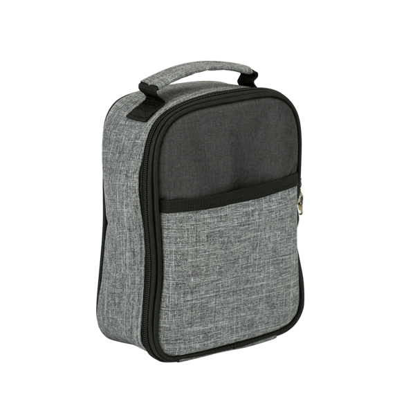 "Everything you need for the perfect two-person picnic! Includes (2) plastic plates, (2) plastic wine glasses, (2) cloth napkins, and (2) metal/plastic set of utensils packaged in a black menswear-patterned portable tote. Features front pocket for extra storage and padded top handle for easy transport. "